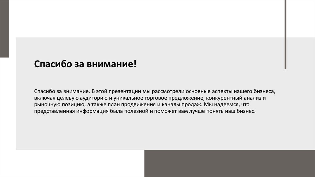 Спасибо за внимание!Спасибо за внимание. В этой презентации мы рассмотрели основные аспекты нашего бизнеса,