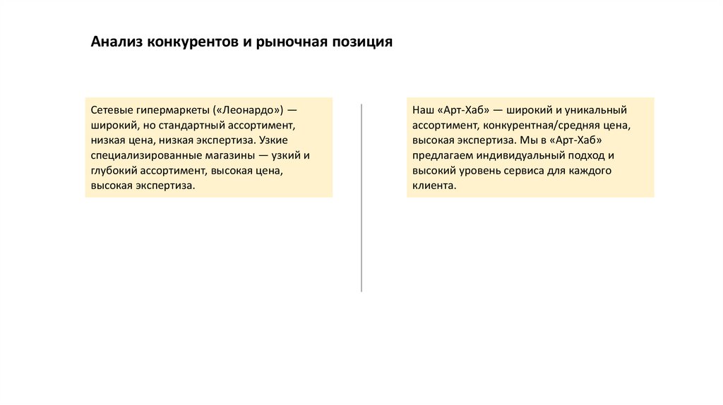 рыночную позицию, а также план продвижения и каналы продаж. Мы надеемся, что