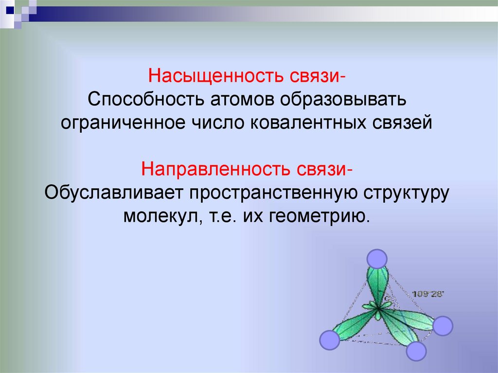 Насыщенность связиСпособность атомов образовыватьограниченное число ковалентных связей