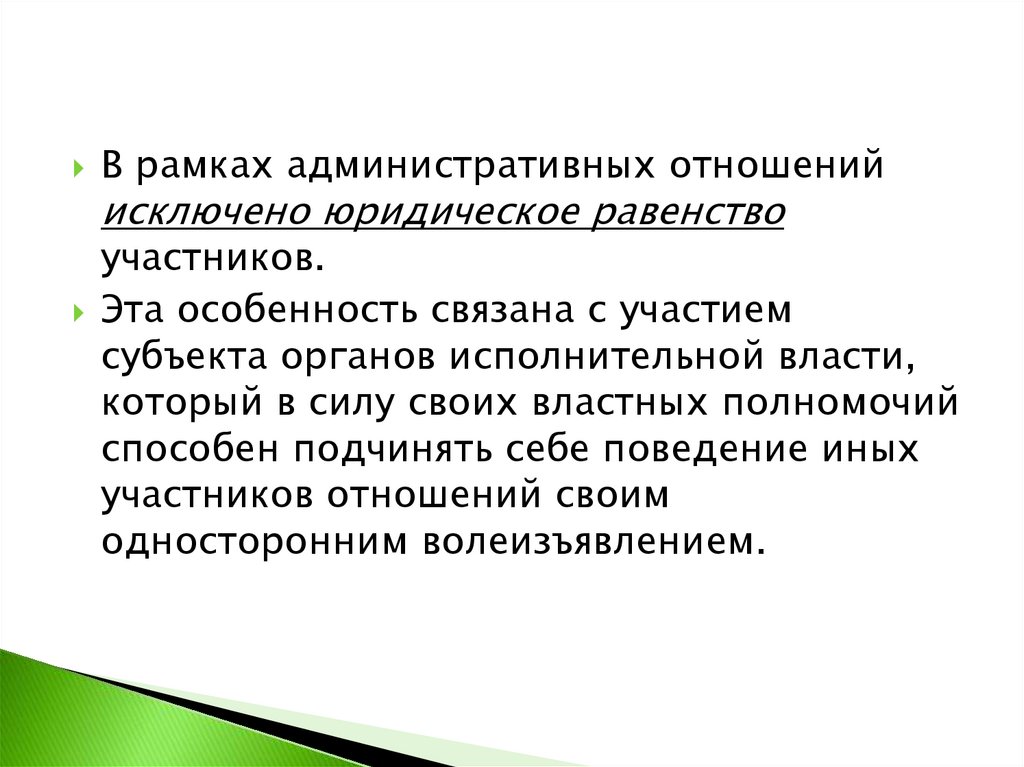 В рамках административных отношенийисключено юридическое равенство