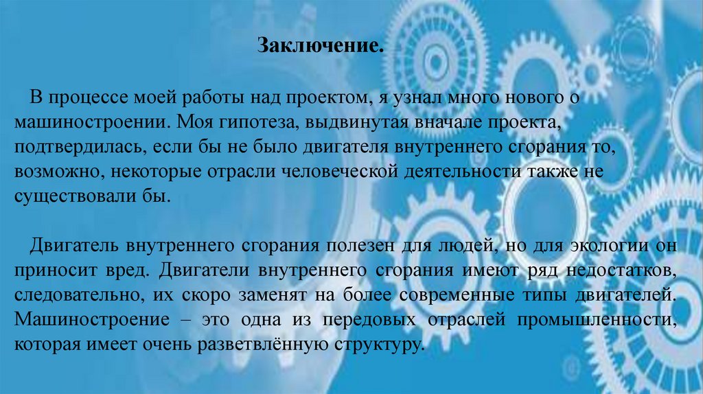 машиностроении. Моя гипотеза, выдвинутая вначале проекта,