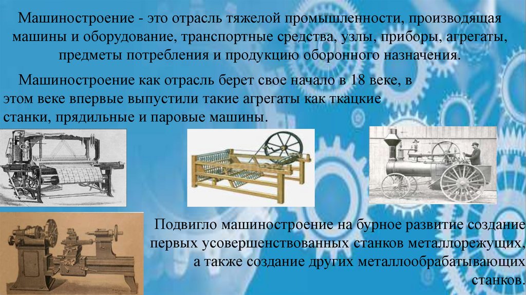 Машиностроение как отрасль берет свое начало в 18 веке, в
