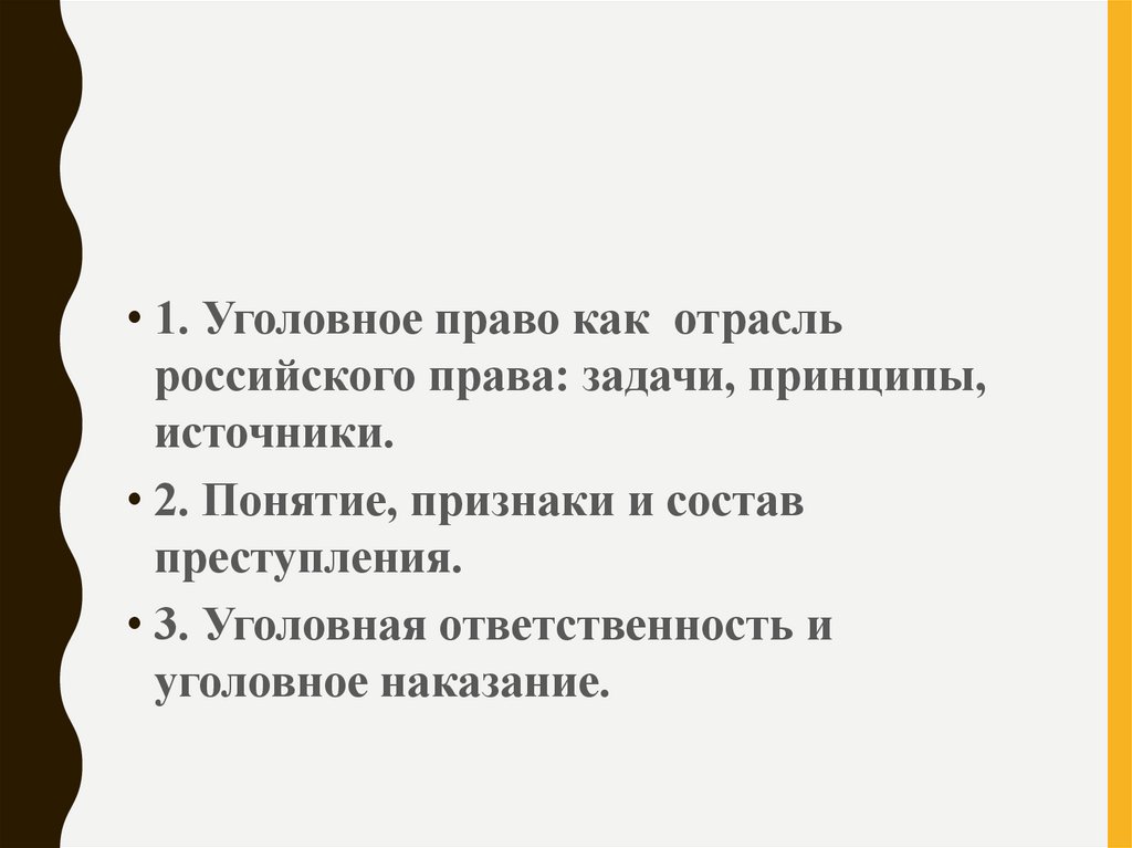 • 1. Уголовное право как отрасльроссийского права: задачи, принципы,