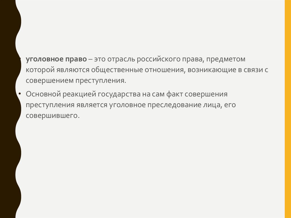 • уголовное право – это отрасль российского права, предметомкоторой являются общественные отношения, возникающие в связи с