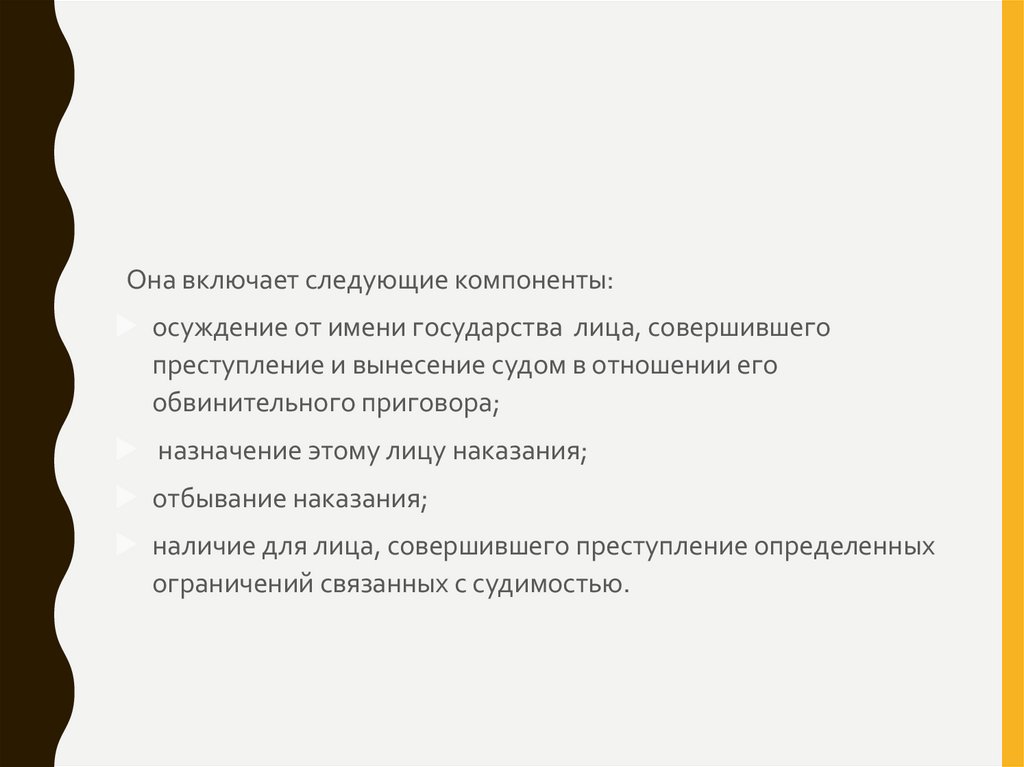 Она включает следующие компоненты:осуждение от имени государства лица, совершившего