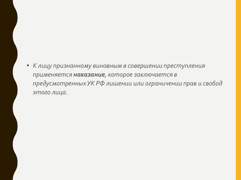 • К лицу признанному виновным в совершении преступленияприменяется наказание, которое заключается в