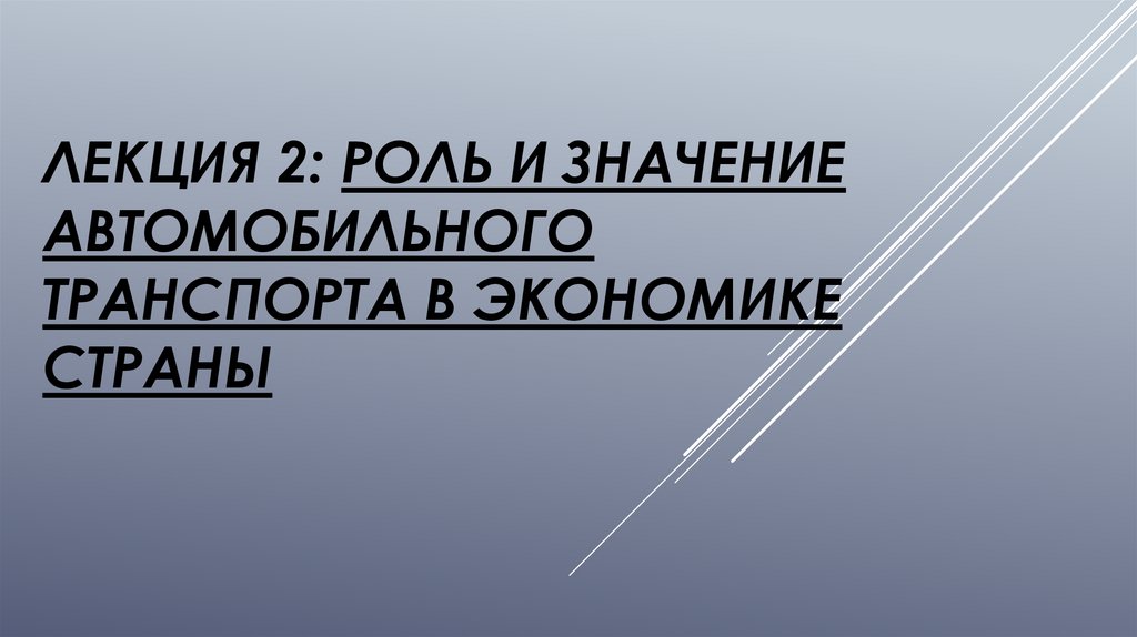 1. Лекция 2: Роль и значение автомобильного транспорта в экономике страны