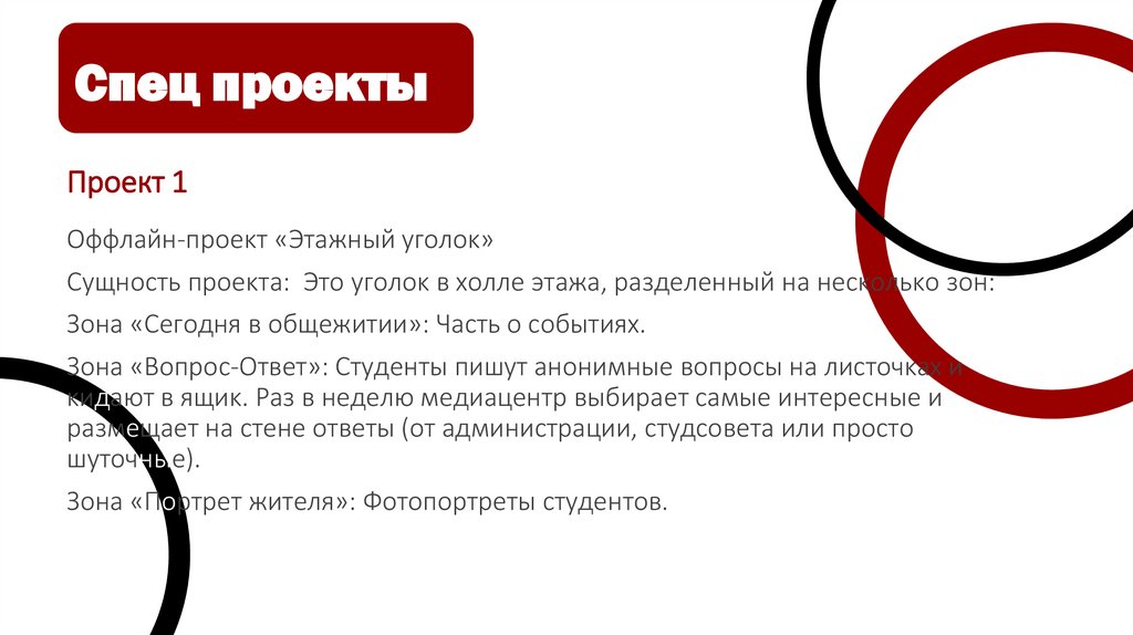 Зона «Сегодня в общежитии»: Часть о событиях.