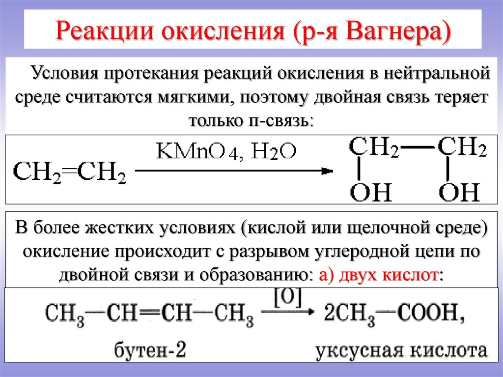 Реакции окисления (р-я Вагнера)Условия протекания реакций окисления в нейтральной