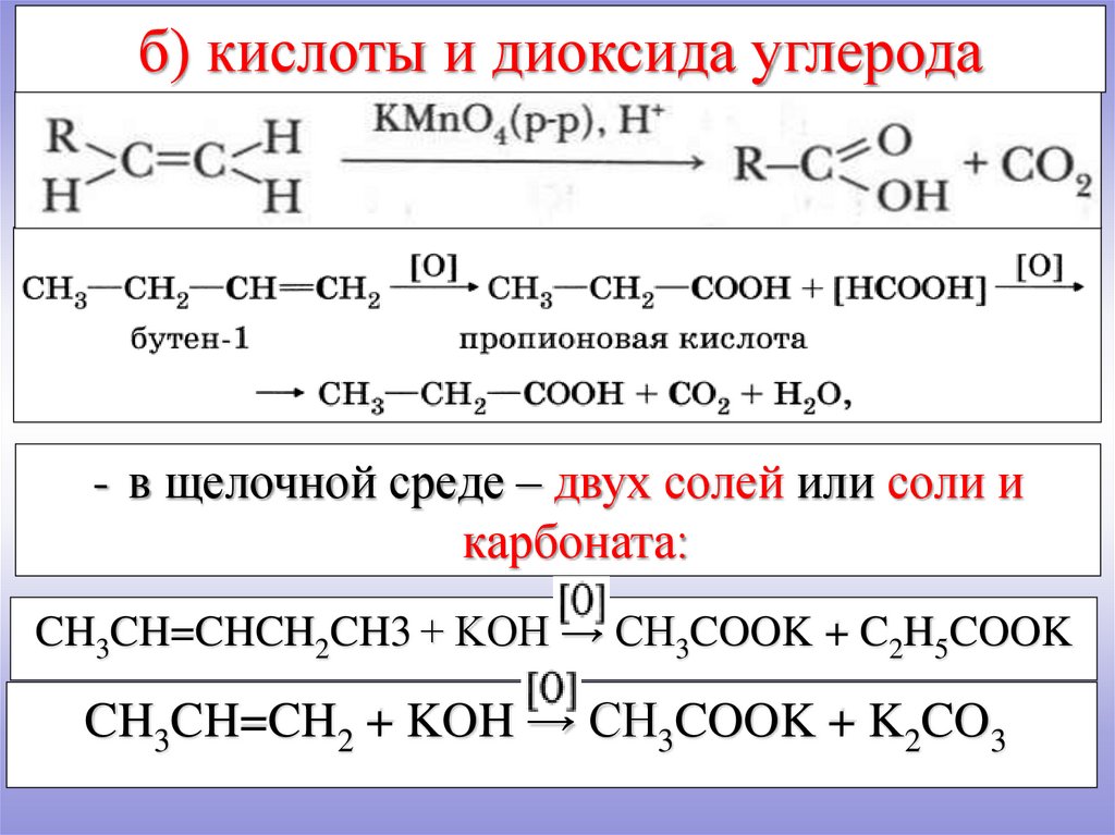 б) кислоты и диоксида углерода- в щелочной среде – двух солей или соли и