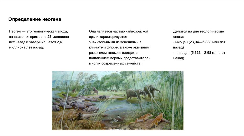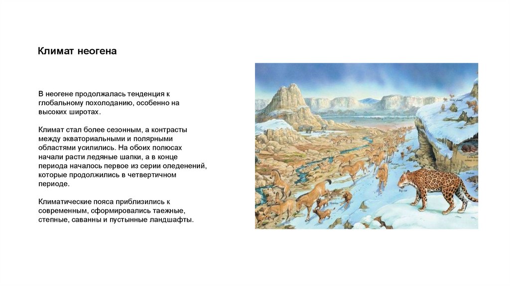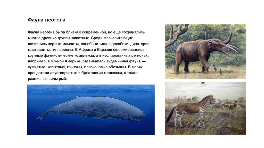 Фауна неогенаФауна неогена была близка к современной, но ещё сохранялись