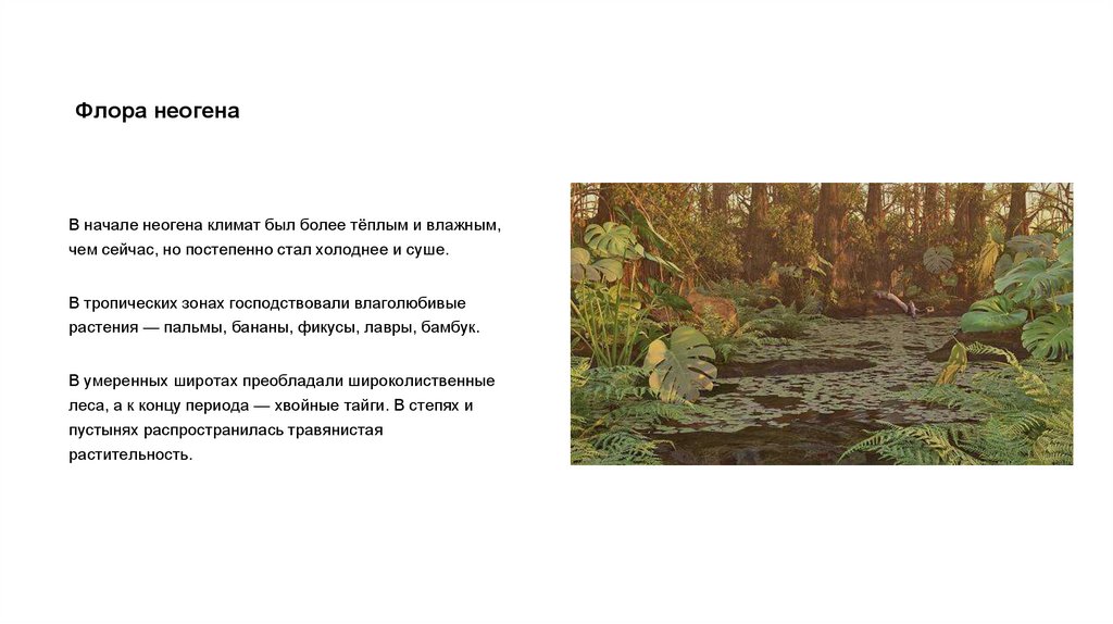Флора неогенаВ начале неогена климат был более тёплым и влажным,