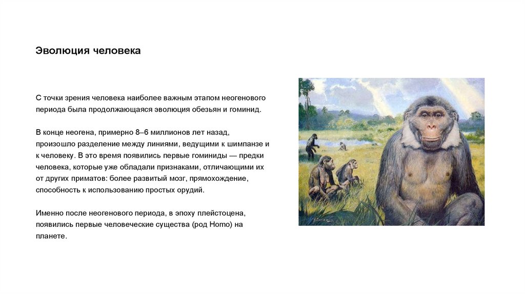 Эволюция человекаС точки зрения человека наиболее важным этапом неогенового