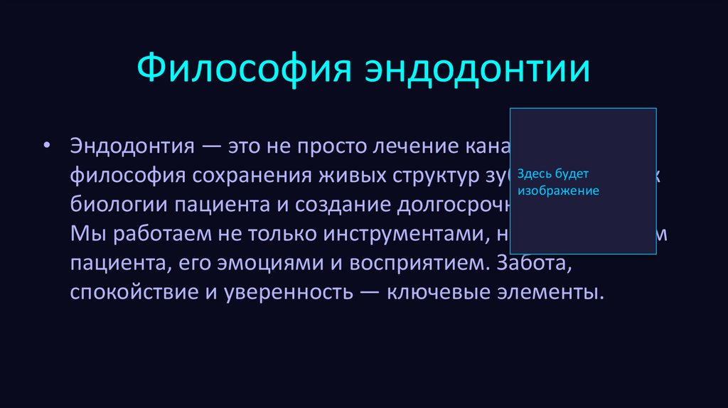 Философия эндодонтии• Эндодонтия — это не просто лечение каналов. Это