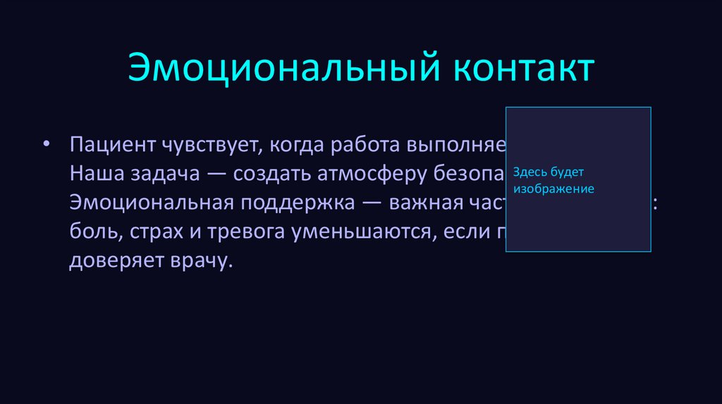 Эмоциональный контакт• Пациент чувствует, когда работа выполняется искренне.