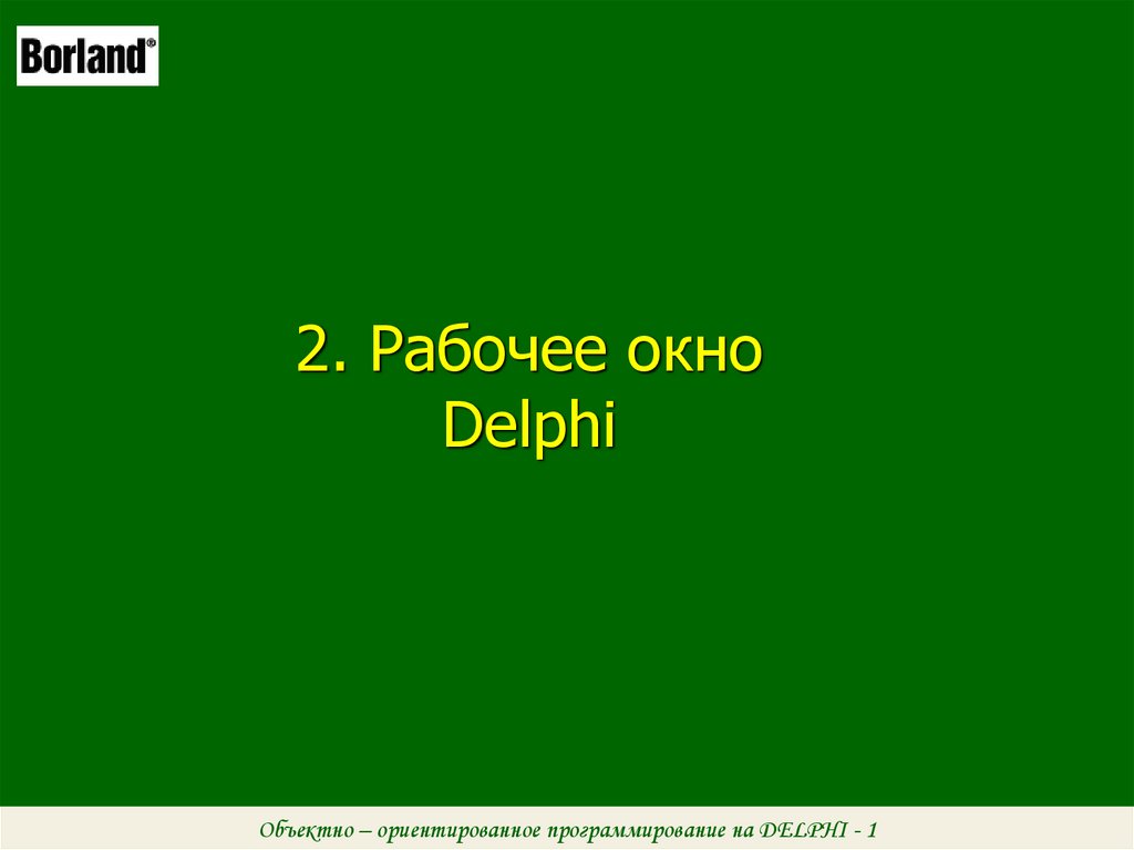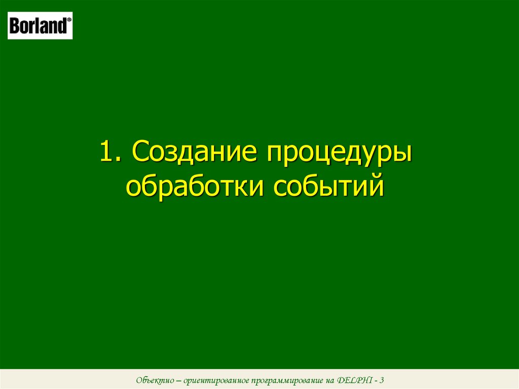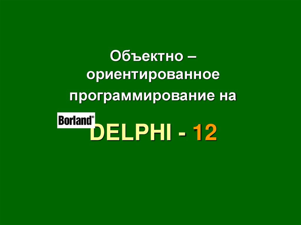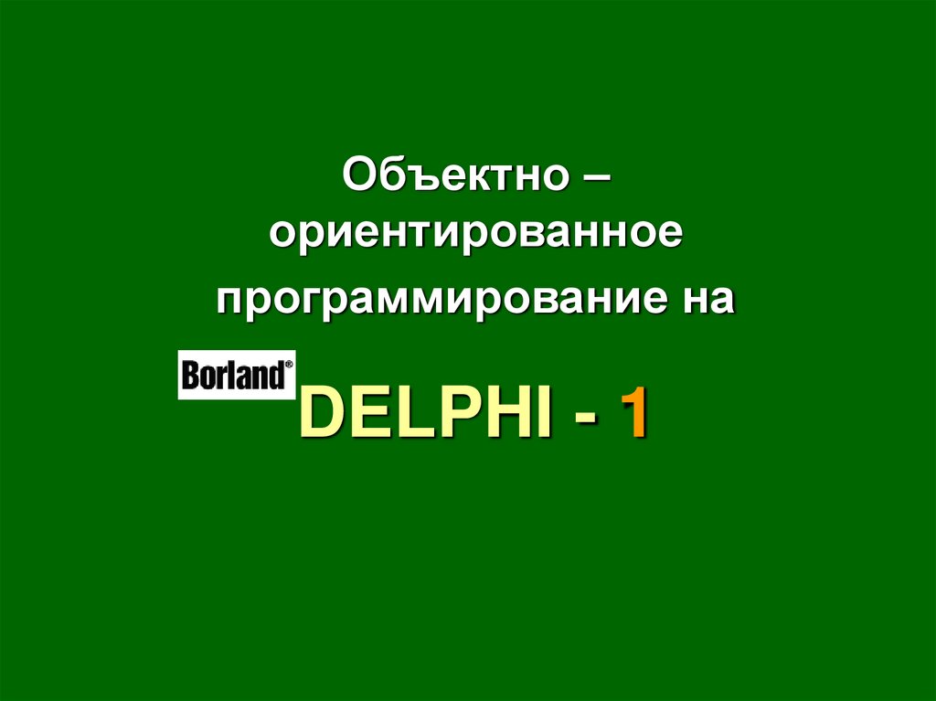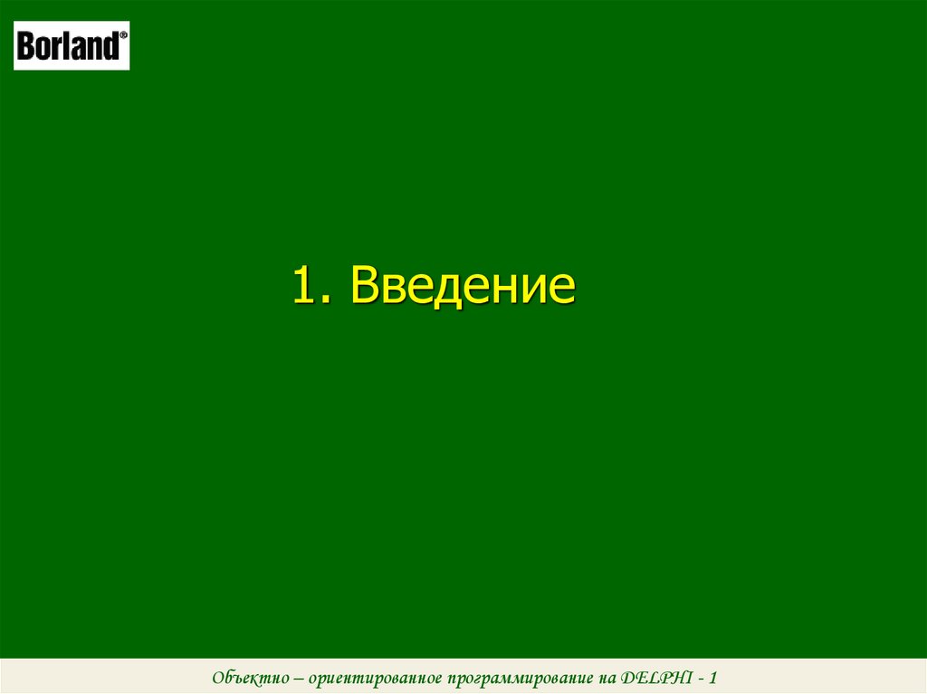 1. ВведениеОбъектно – ориентированное программирование на DELPHI - 1