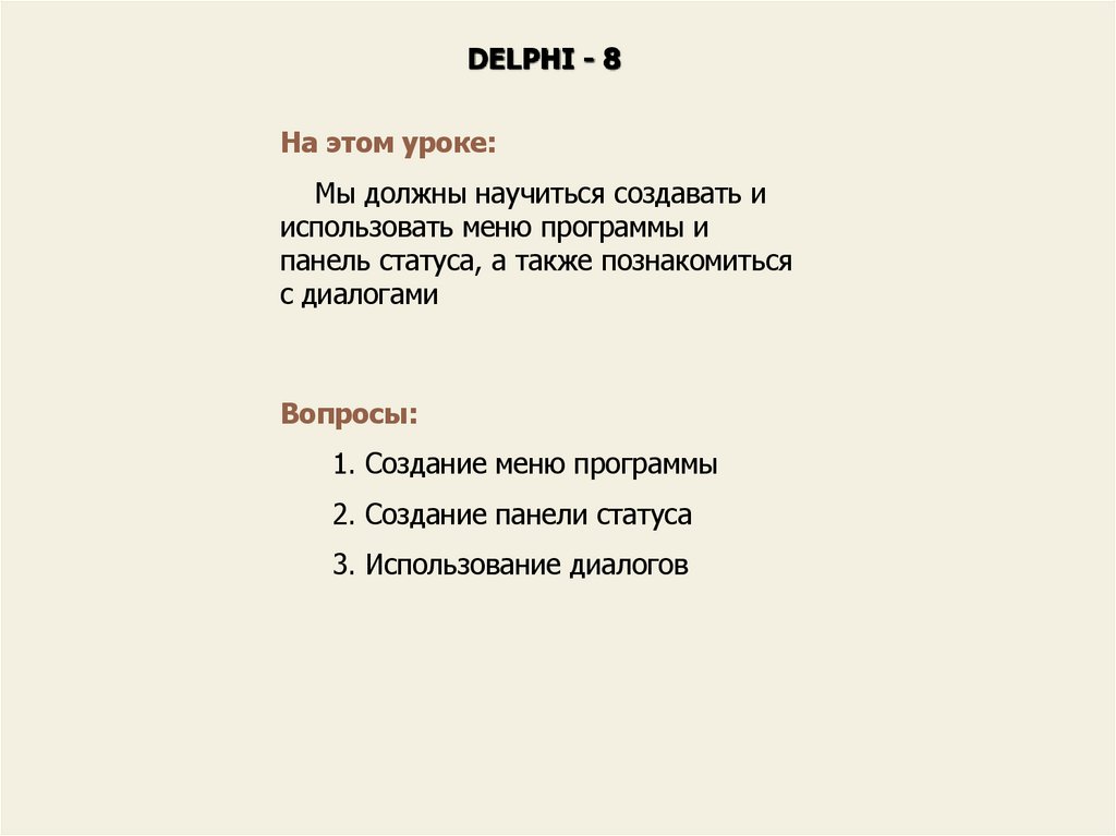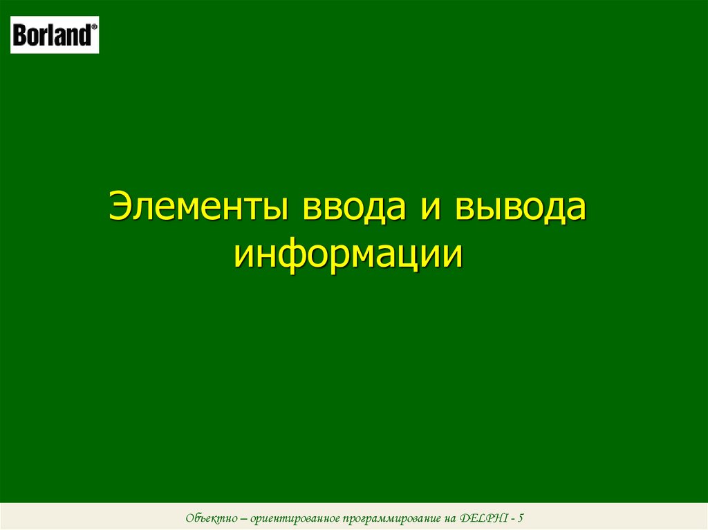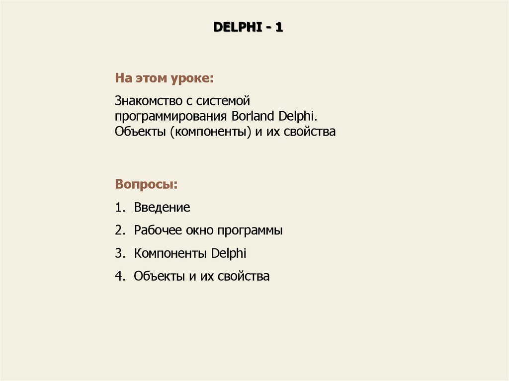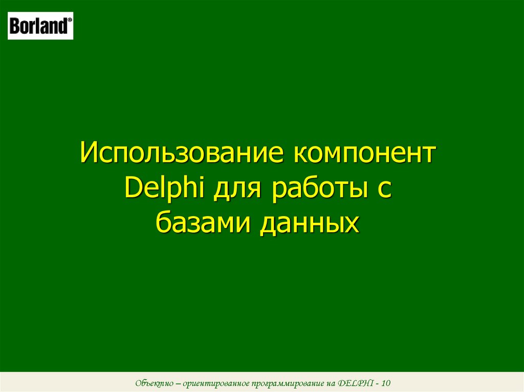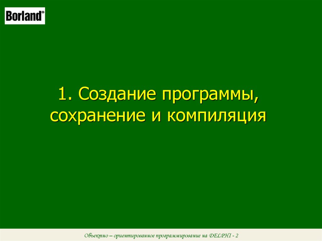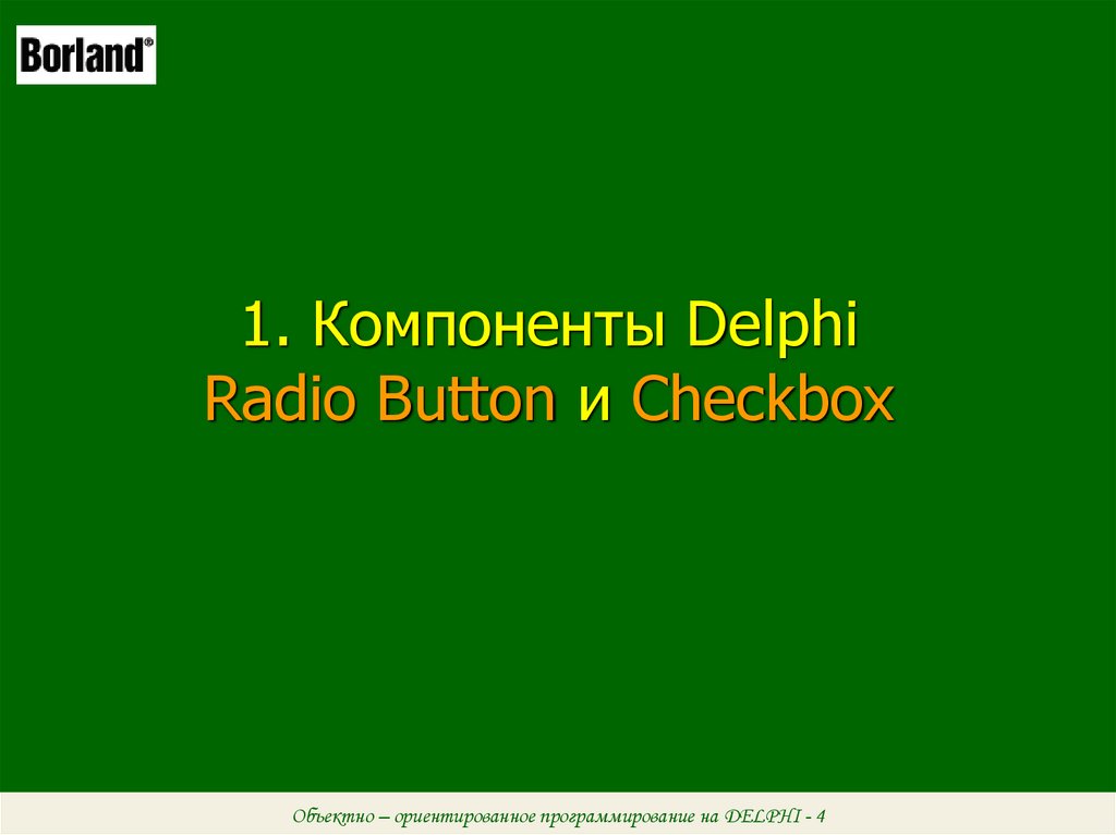 1. ВведениеОбъектно – ориентированное программирование на DELPHI - 1