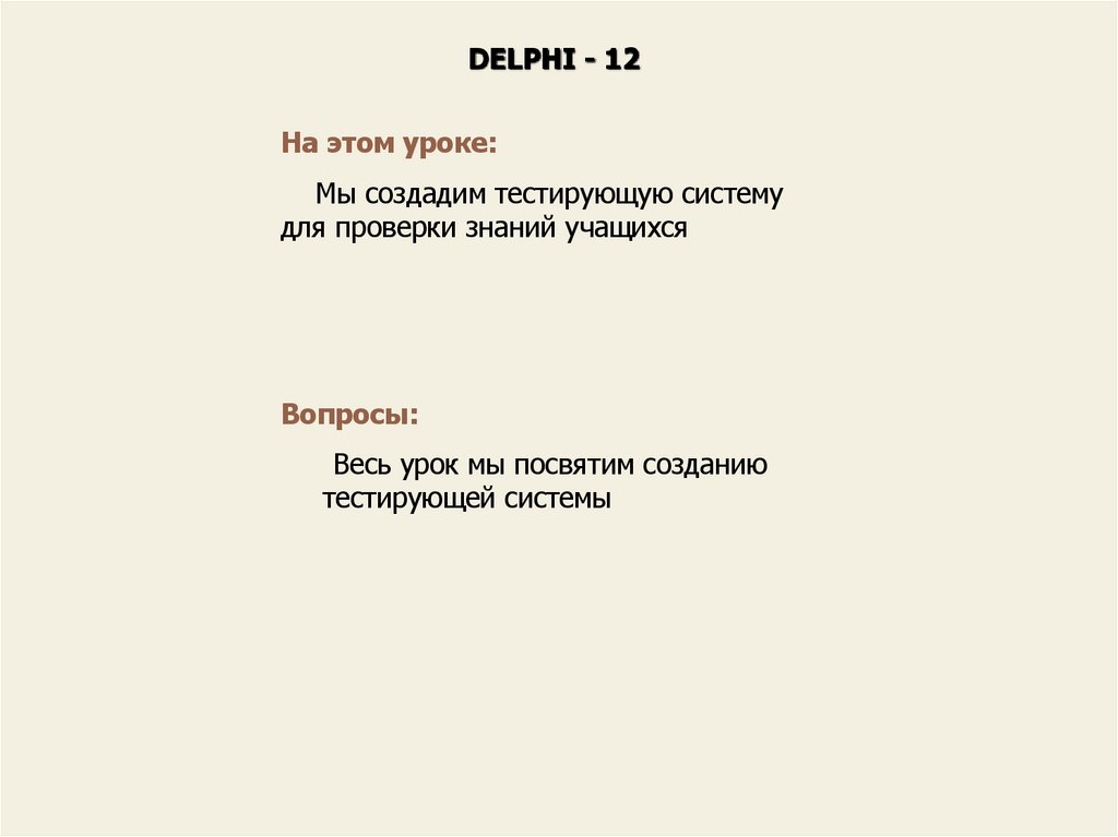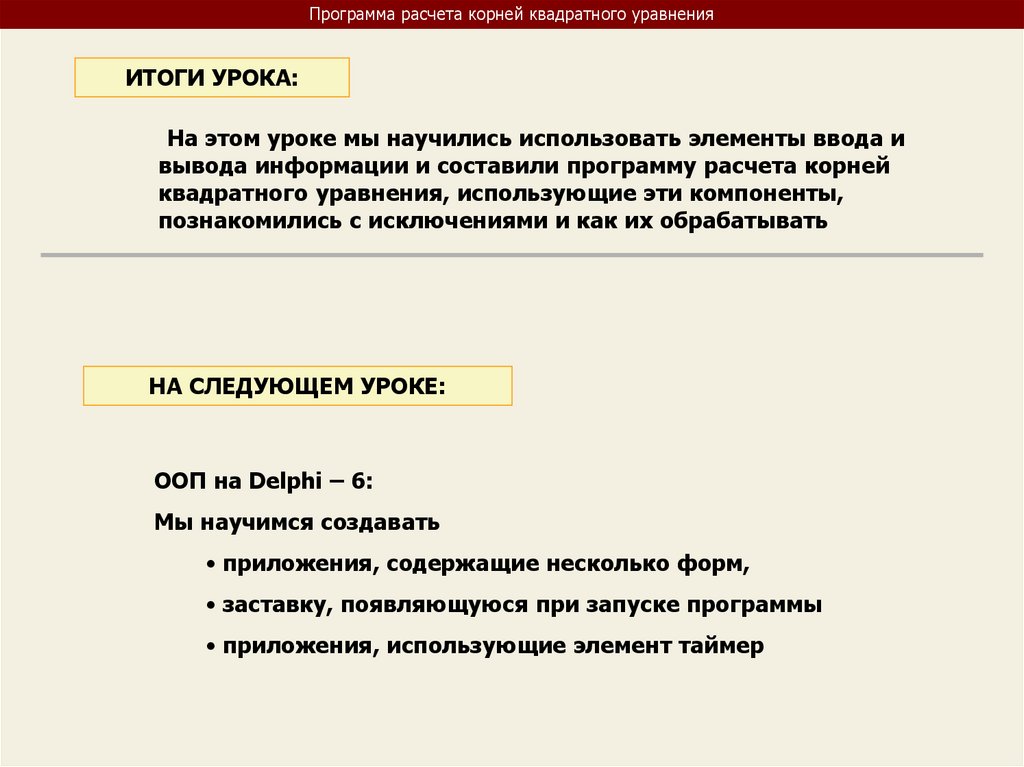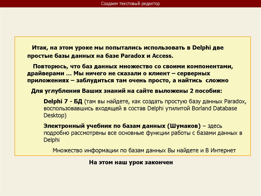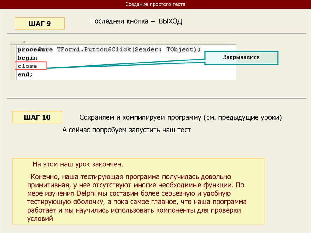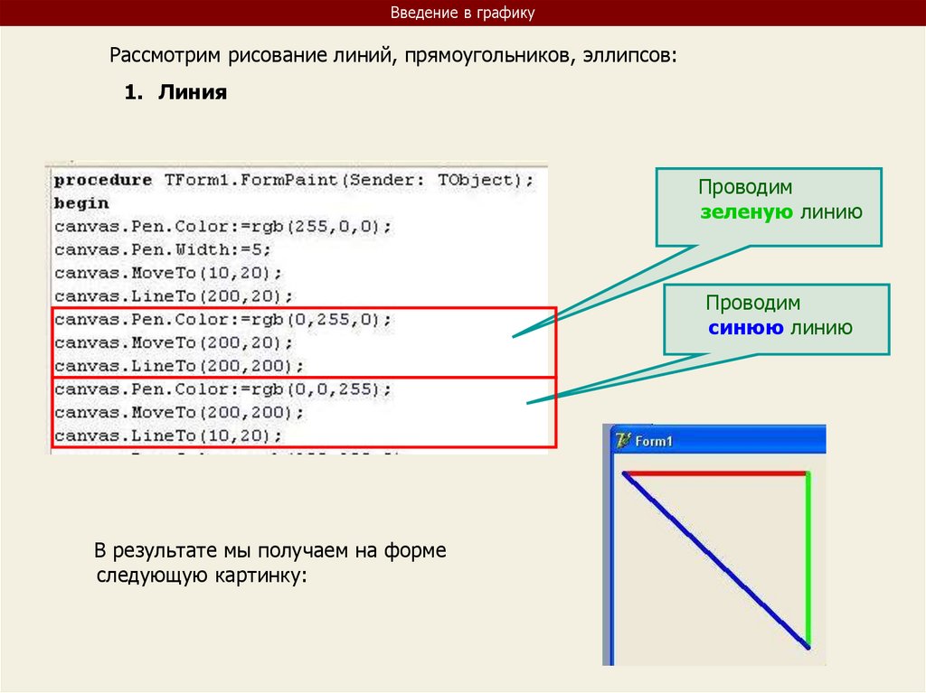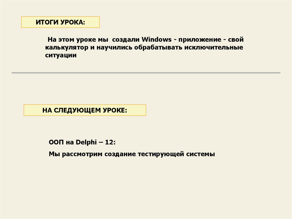 ИТОГИ УРОКА:На этом уроке мы научились работать с графикой в Delphi и