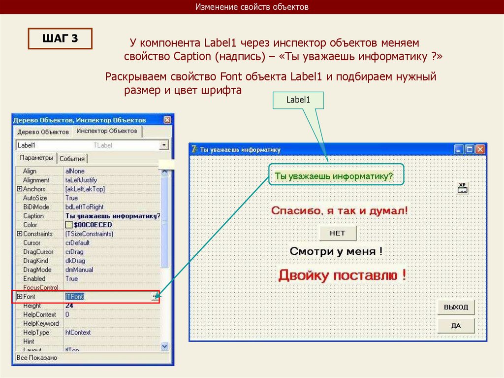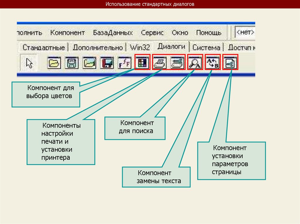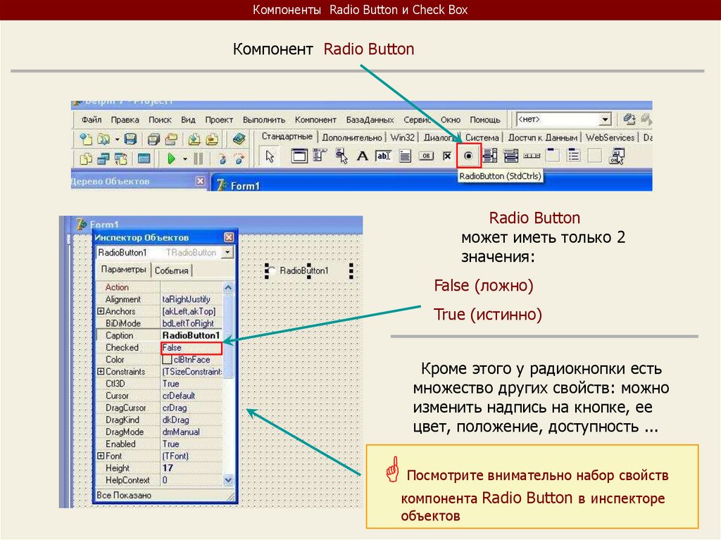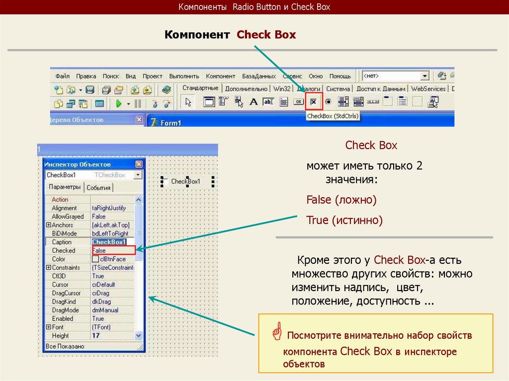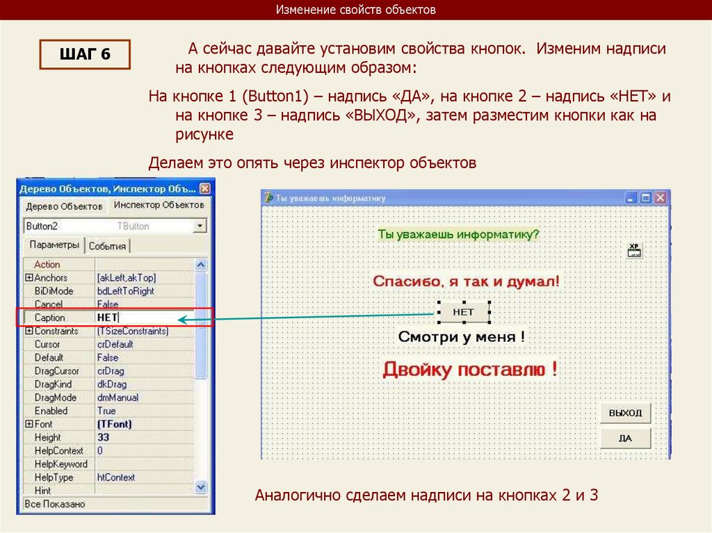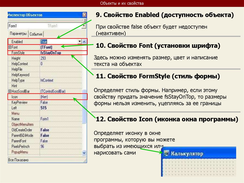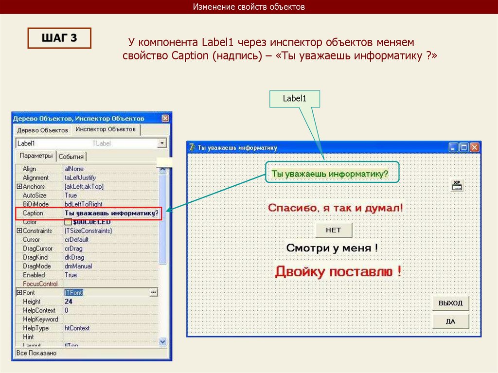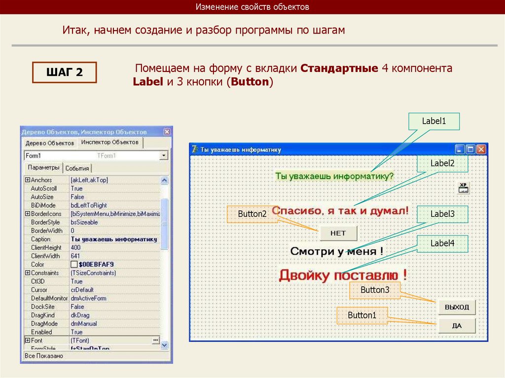 этих кубиков будут играть объекты (кнопки, надписи, Edit – ы и прочие