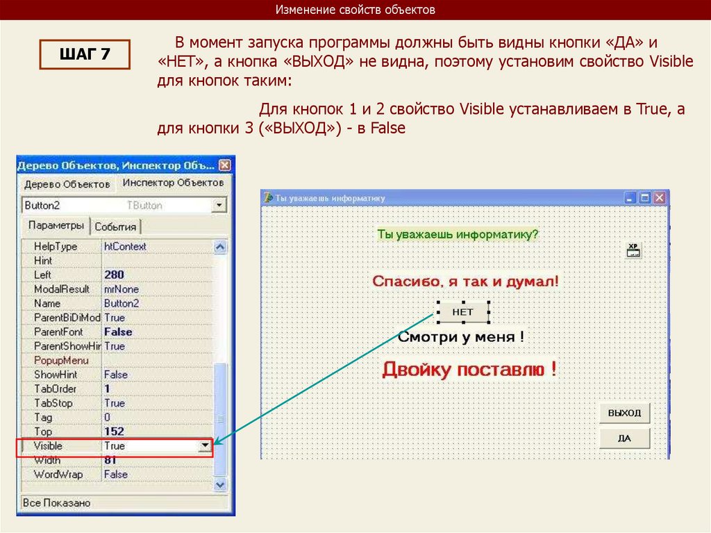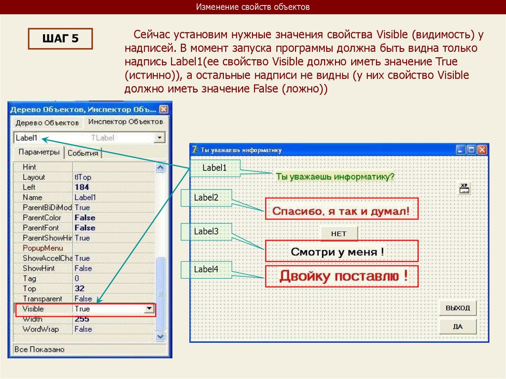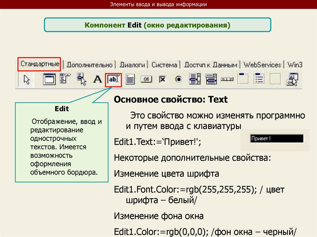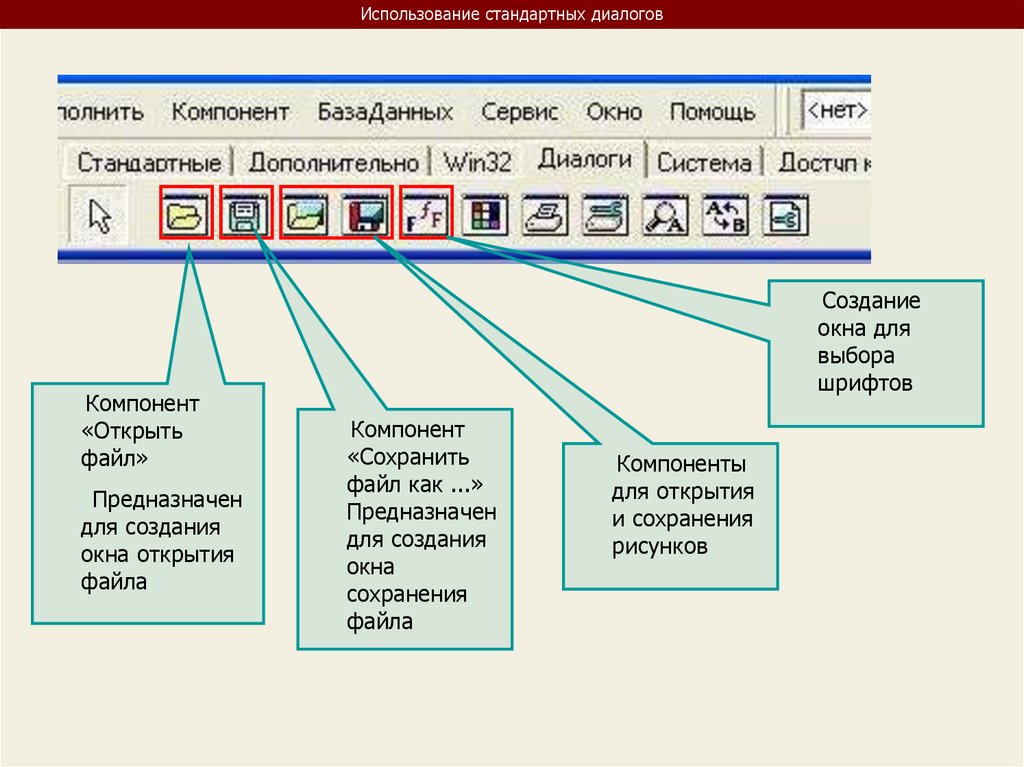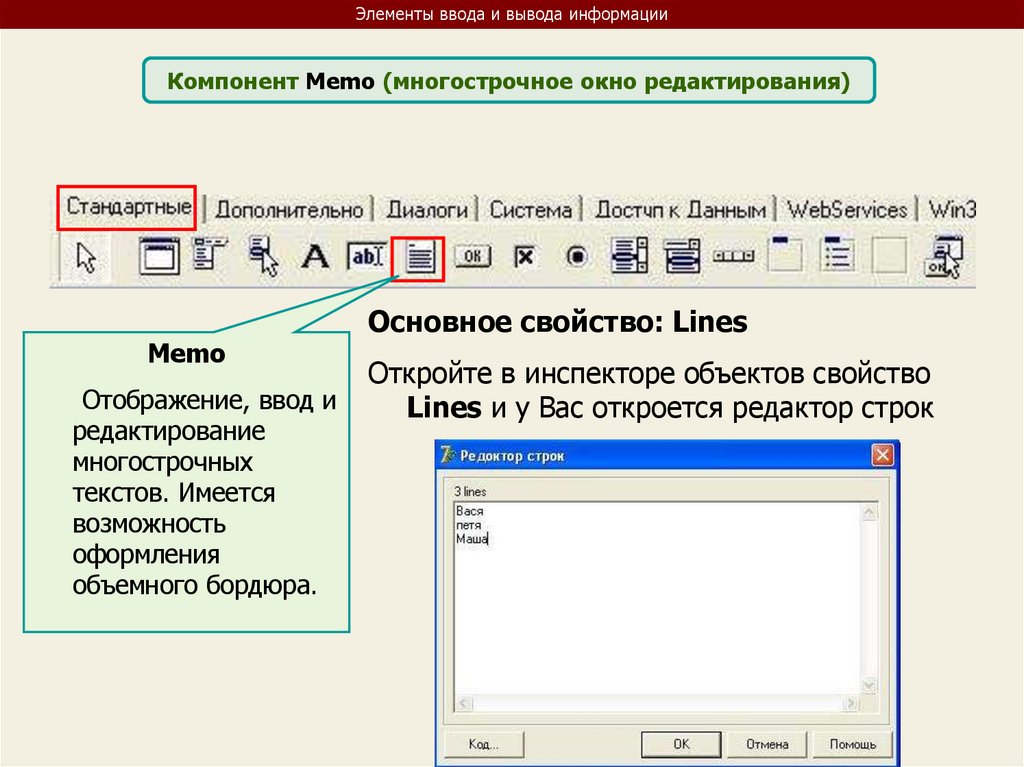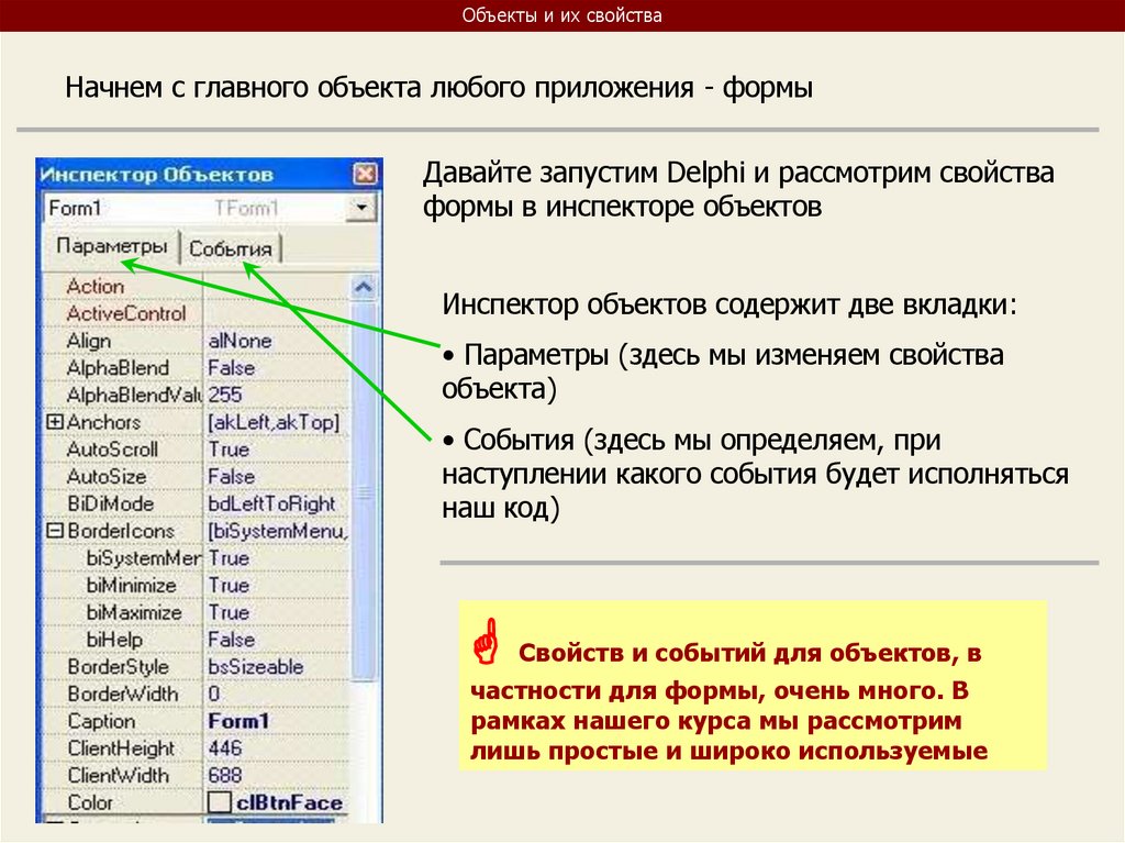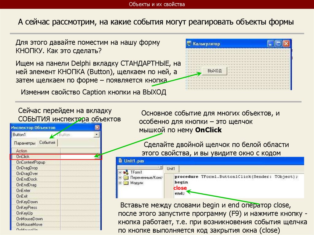 этих кубиков будут играть объекты (кнопки, надписи, Edit – ы и прочие