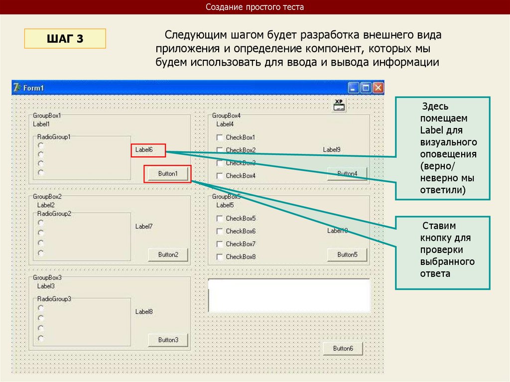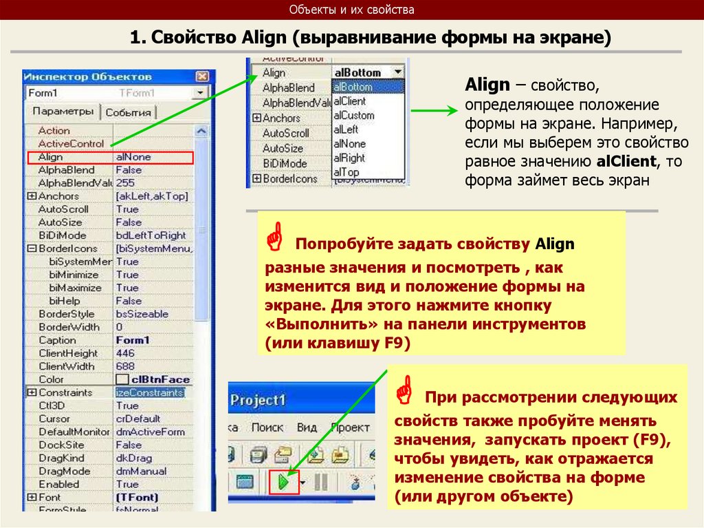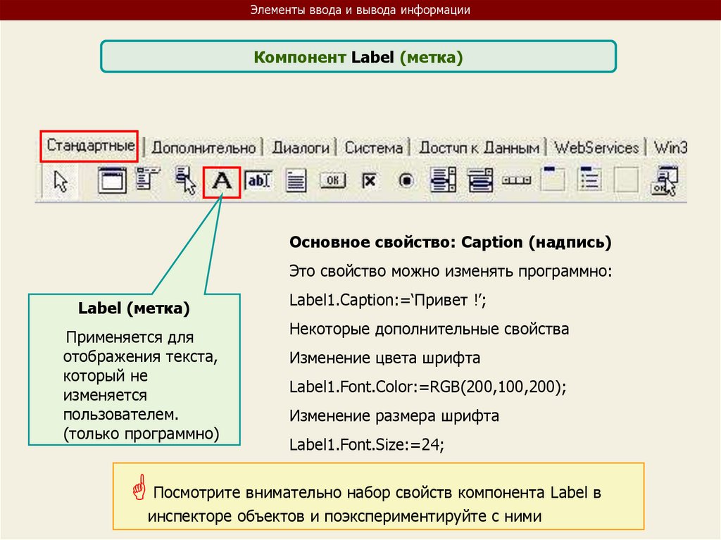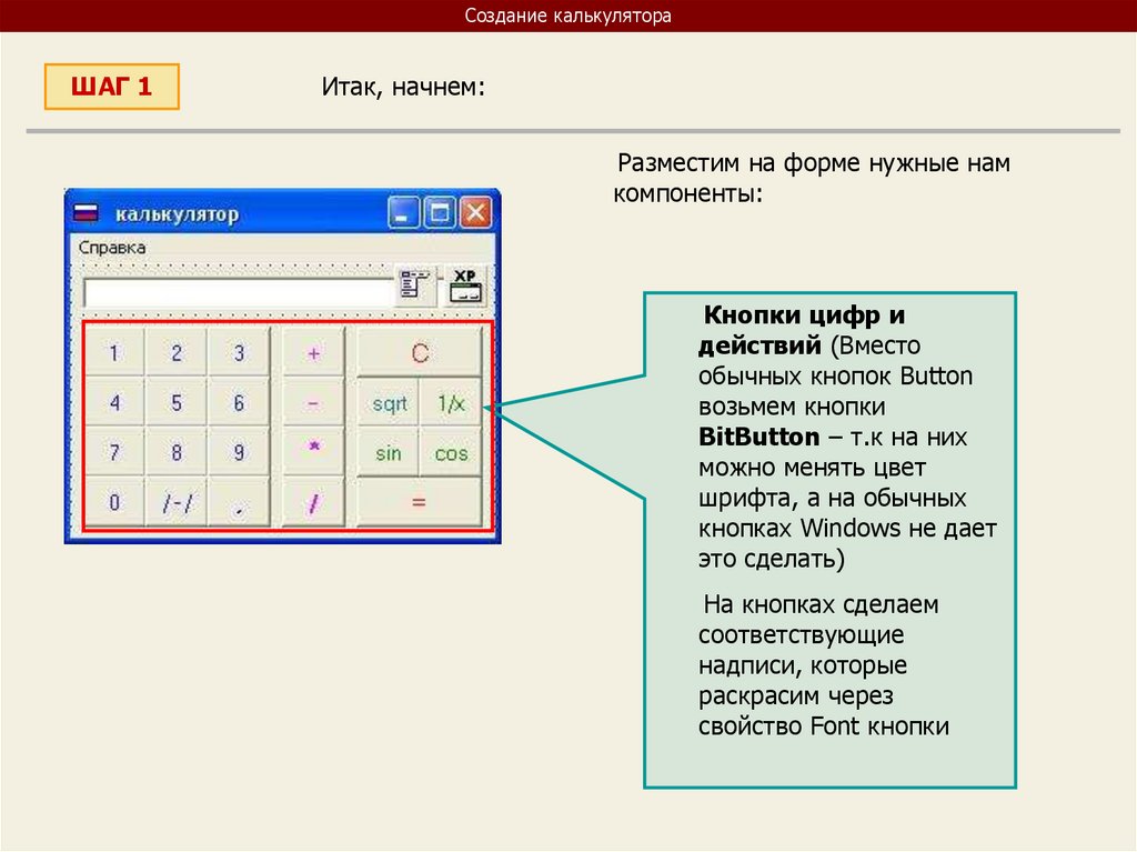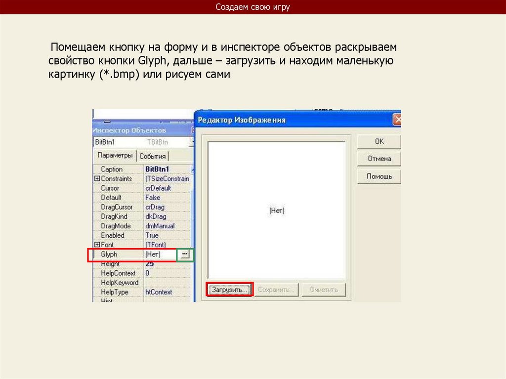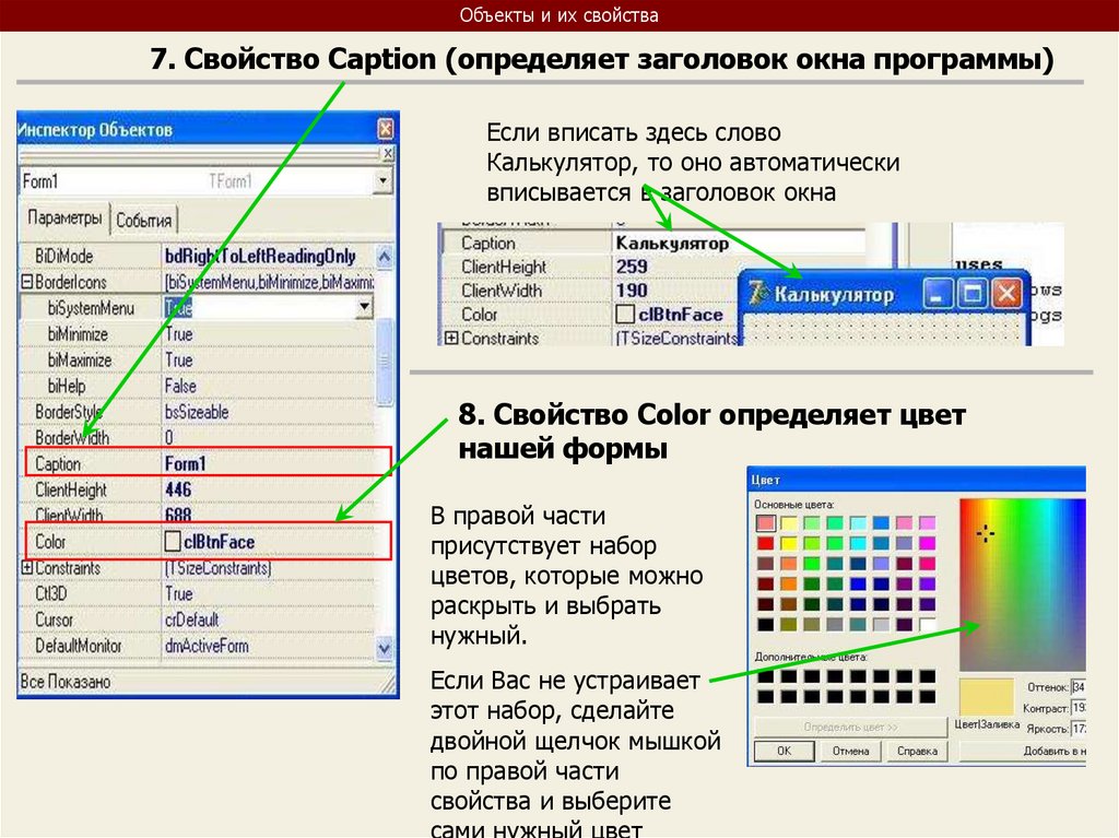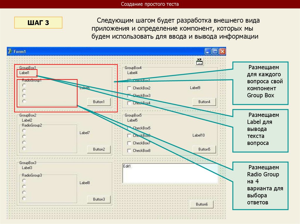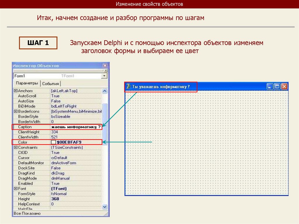 этих кубиков будут играть объекты (кнопки, надписи, Edit – ы и прочие