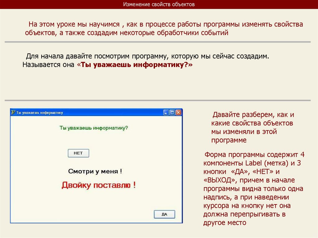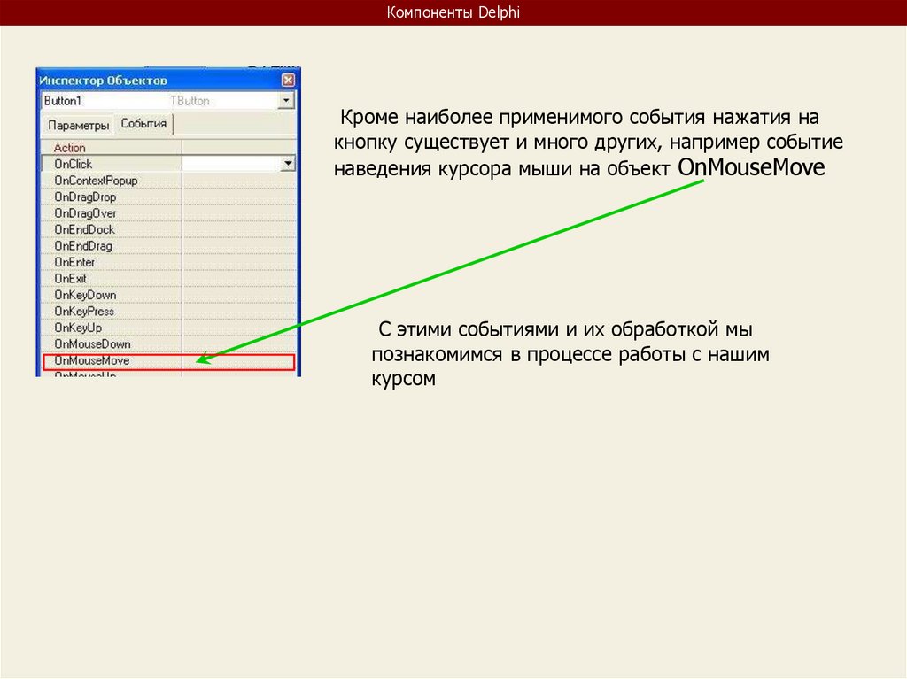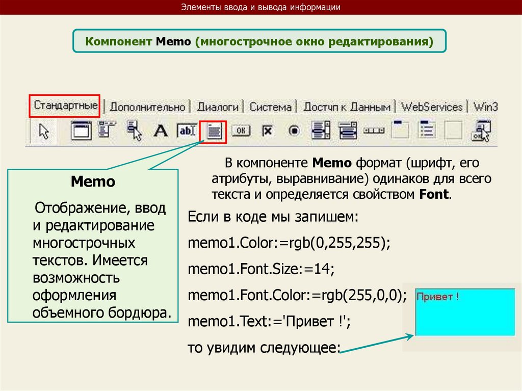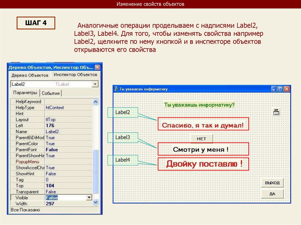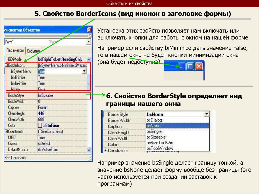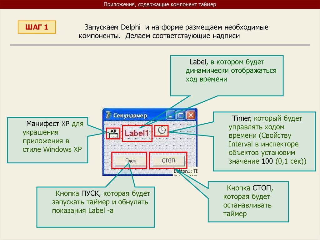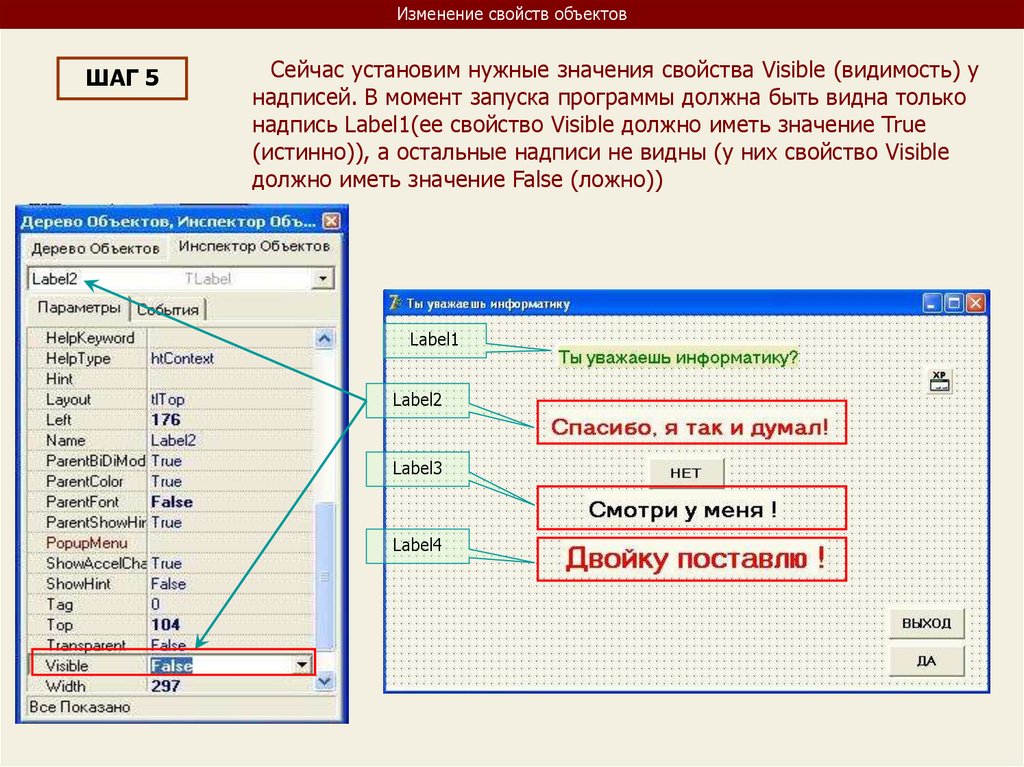 этих кубиков будут играть объекты (кнопки, надписи, Edit – ы и прочие