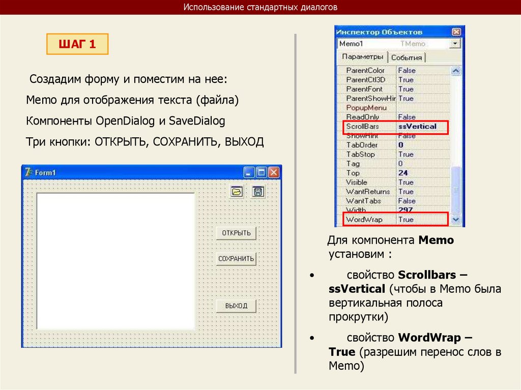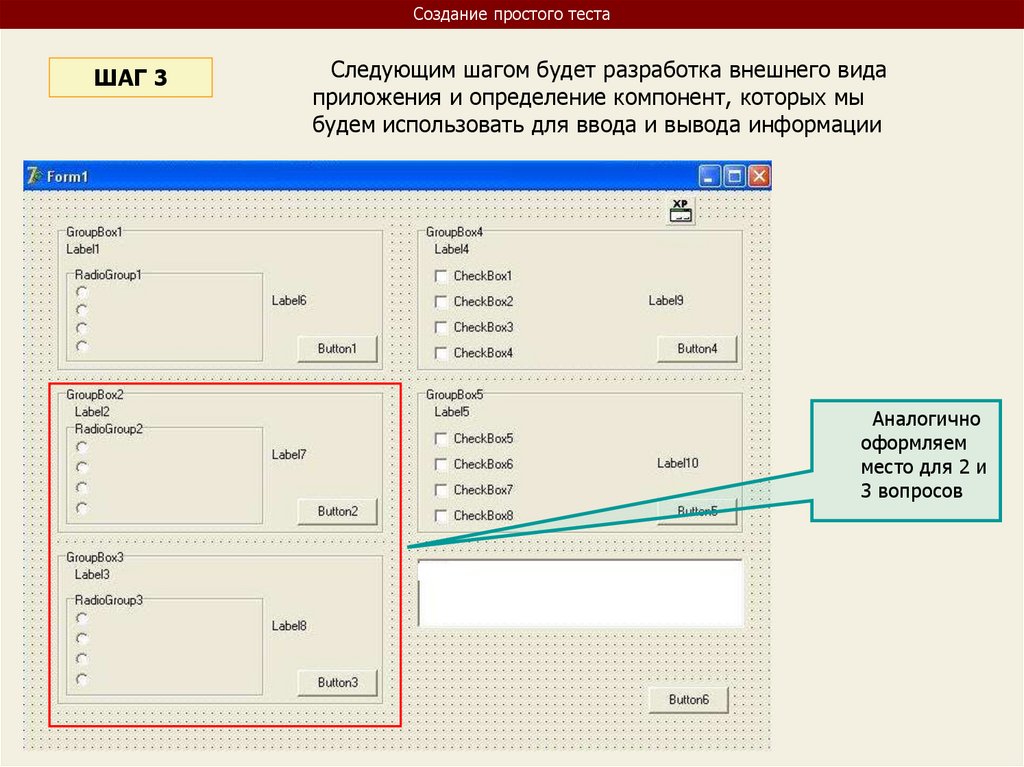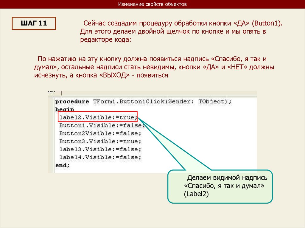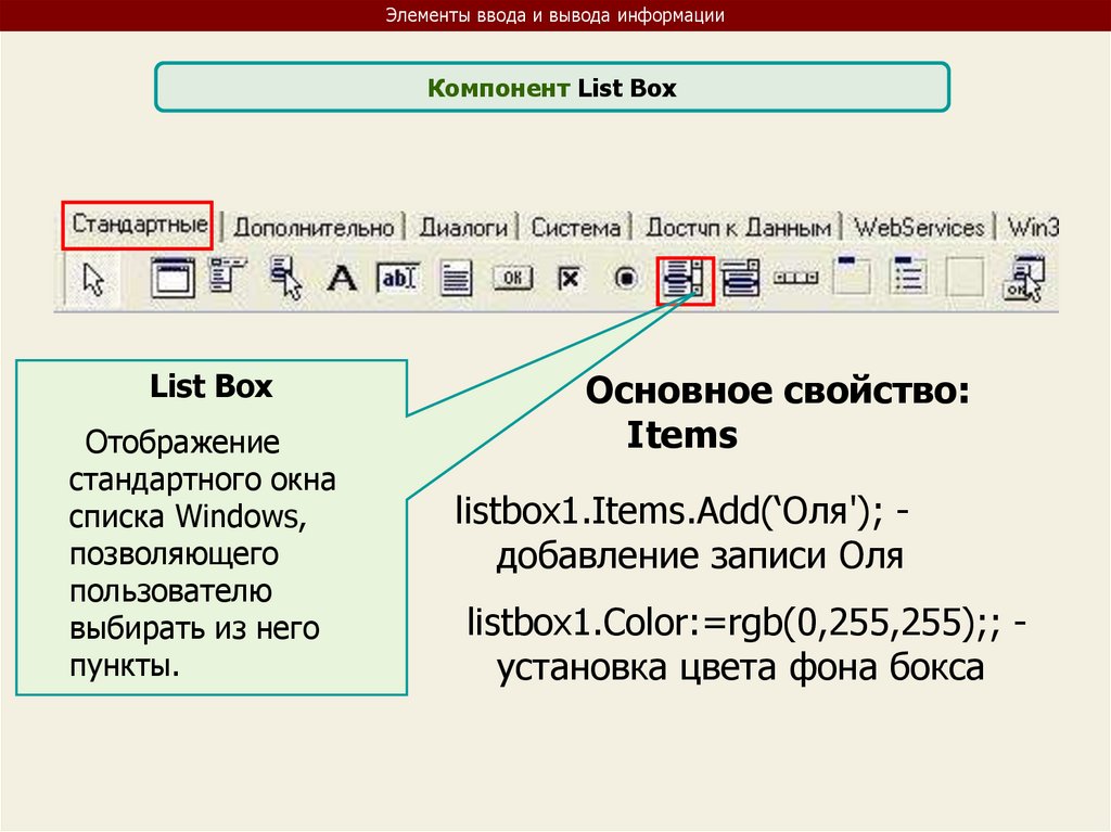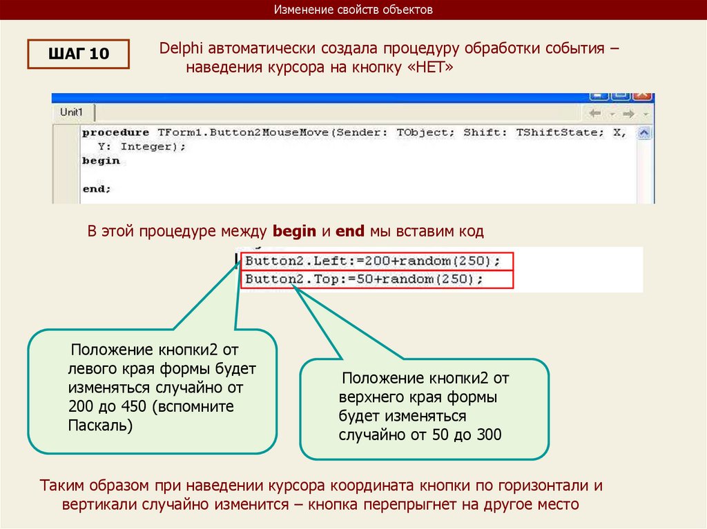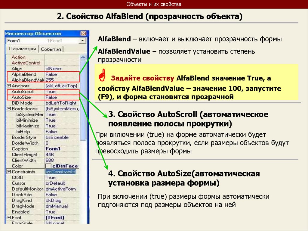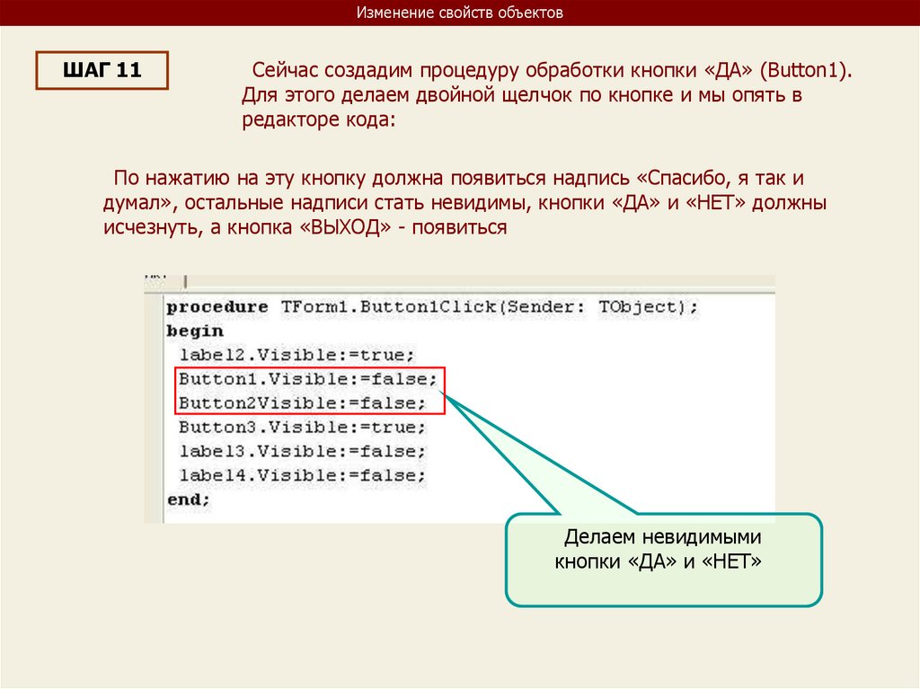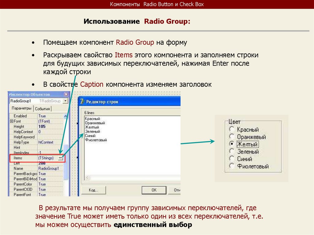 этих кубиков будут играть объекты (кнопки, надписи, Edit – ы и прочие