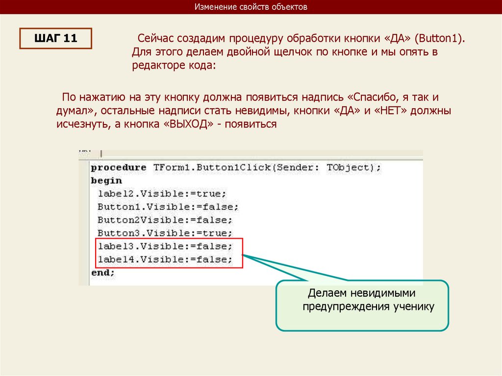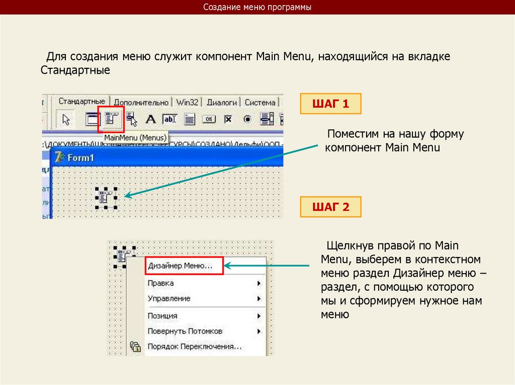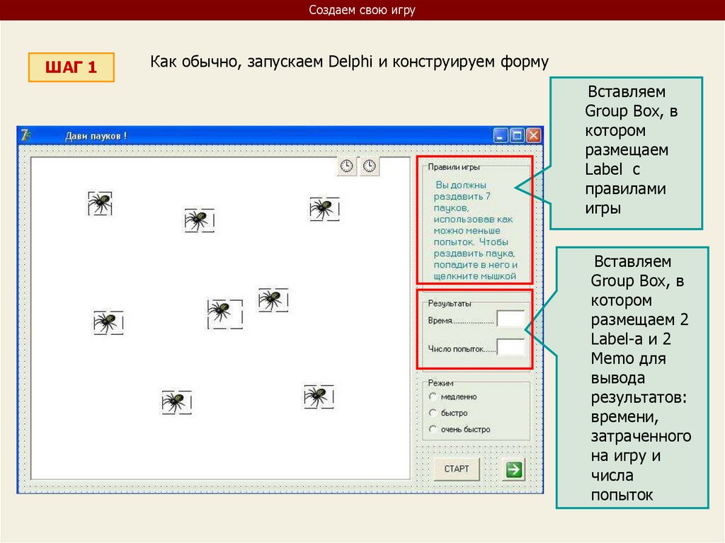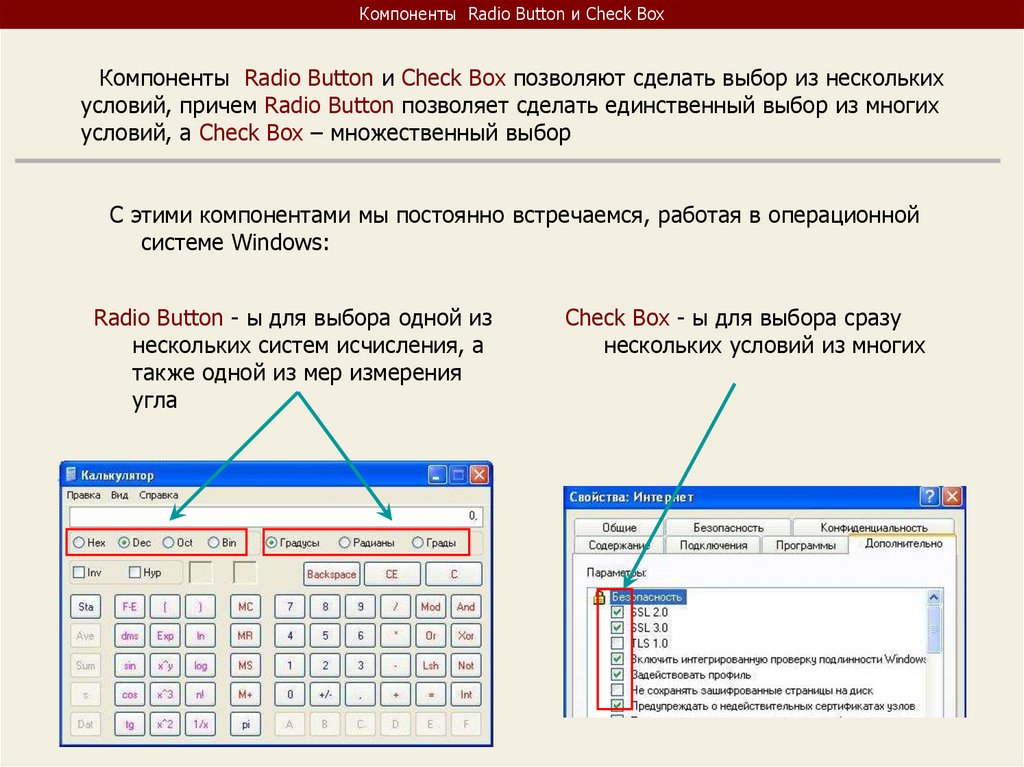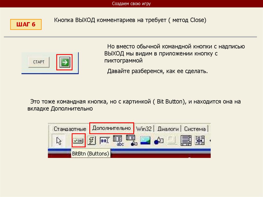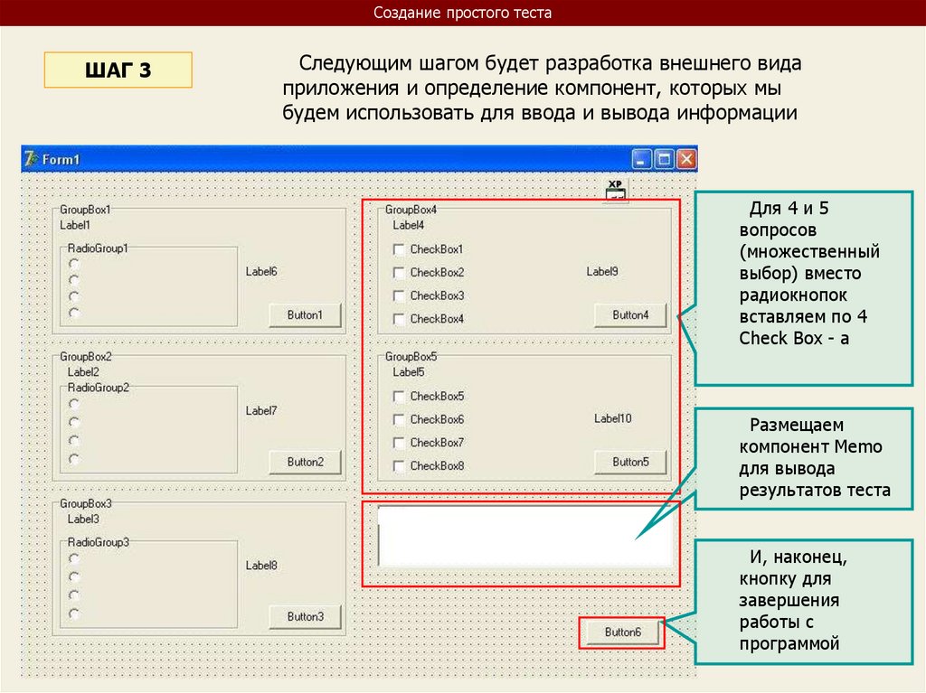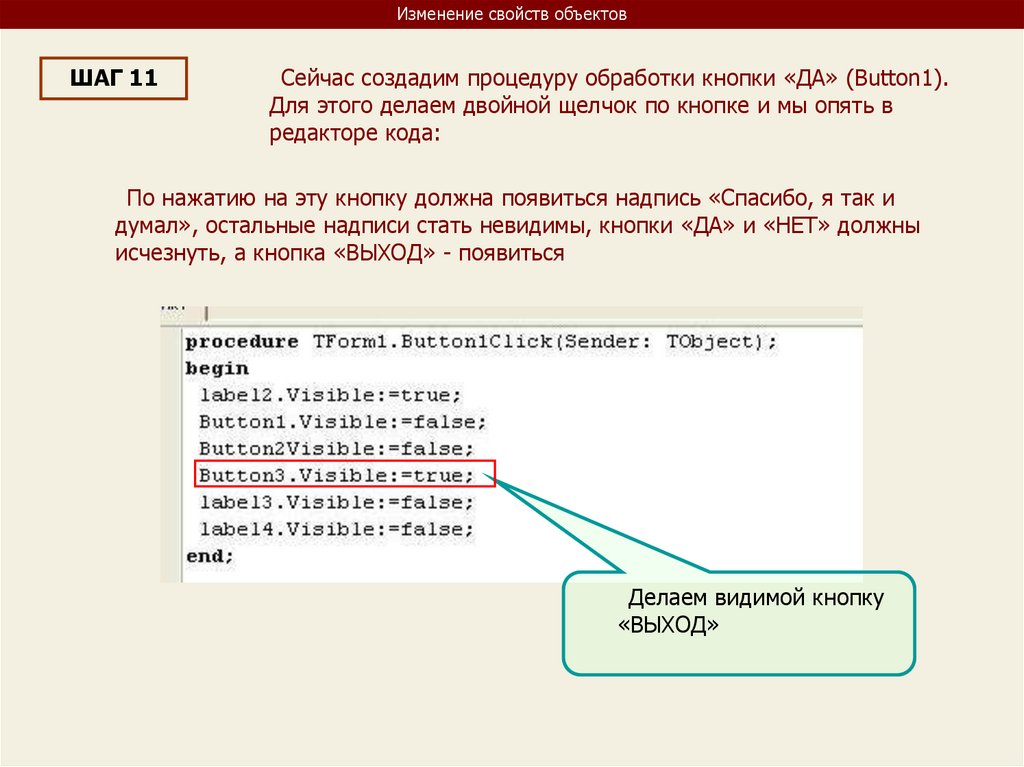 этих кубиков будут играть объекты (кнопки, надписи, Edit – ы и прочие