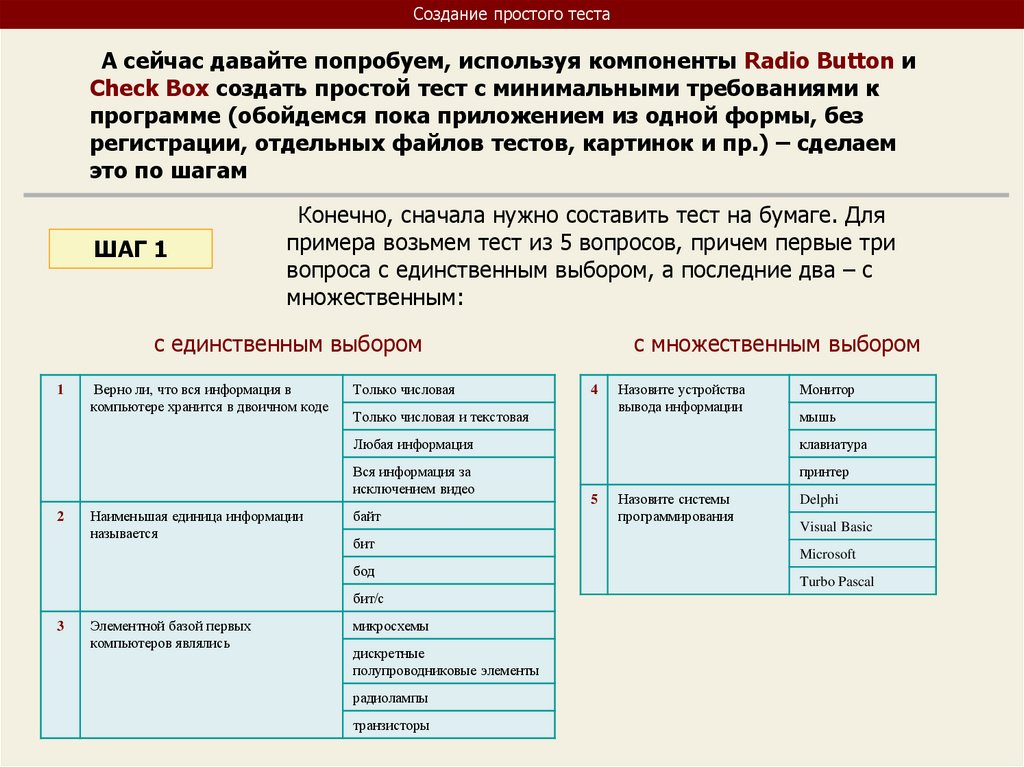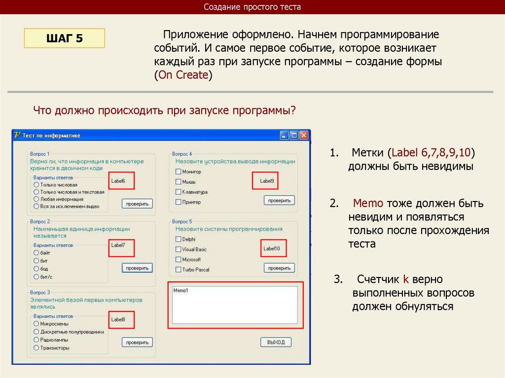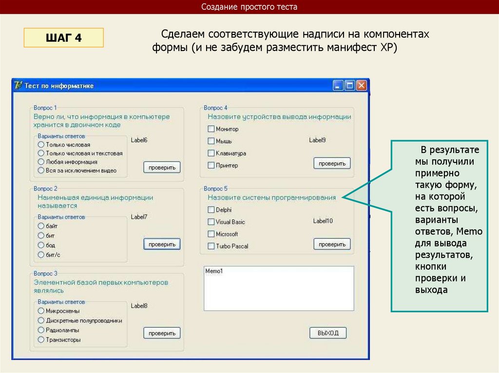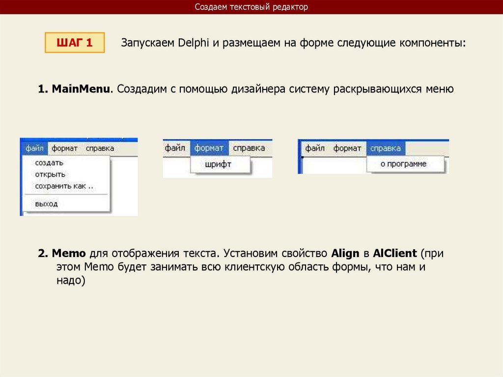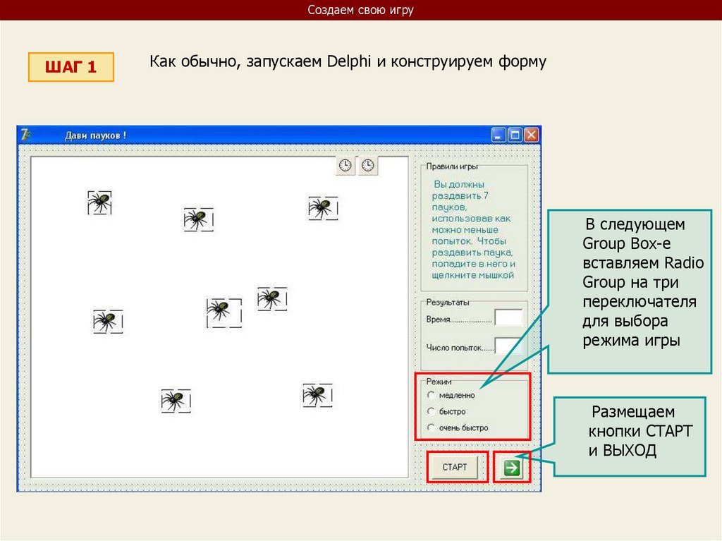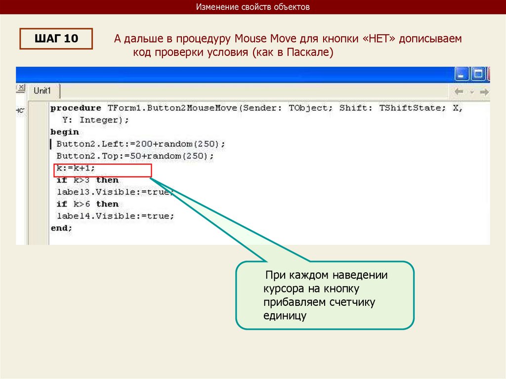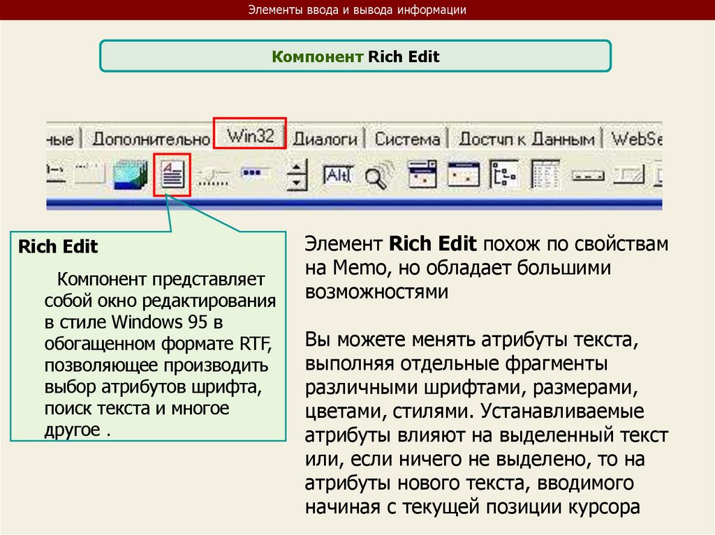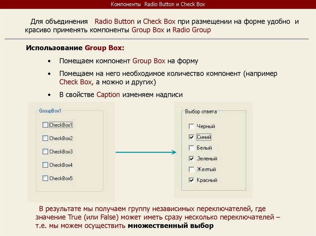 этих кубиков будут играть объекты (кнопки, надписи, Edit – ы и прочие