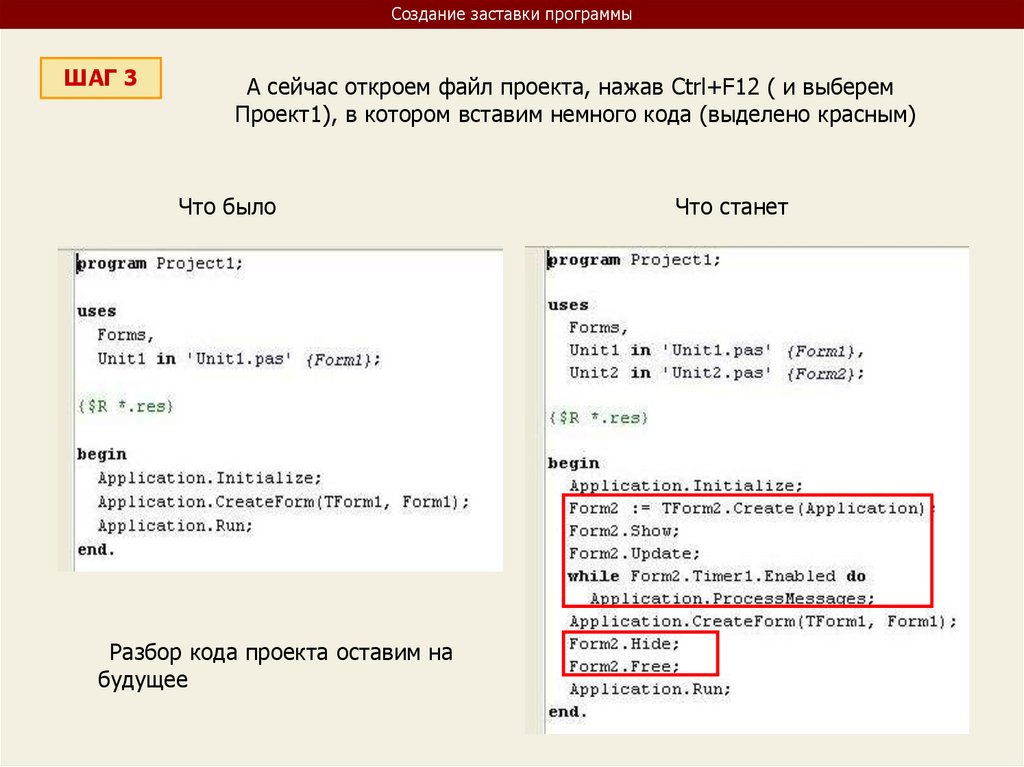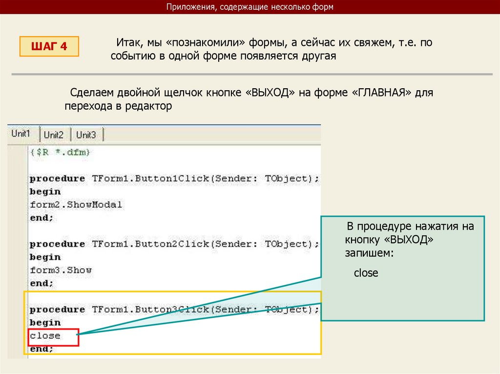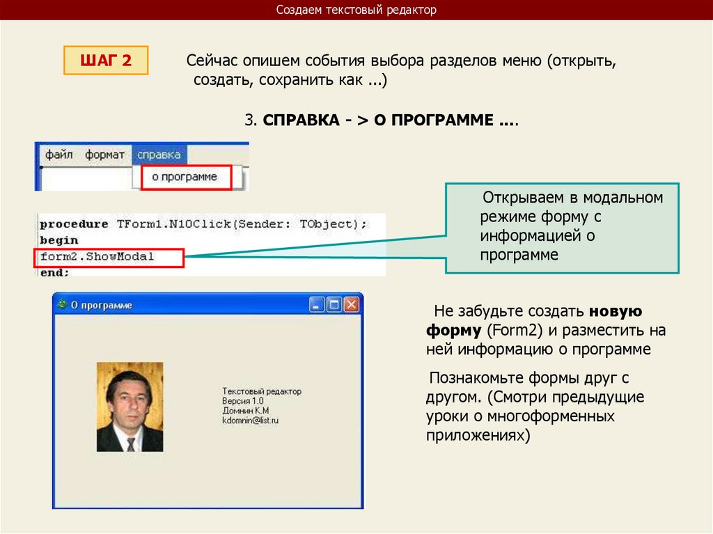 Здесь мы должны создать форму «О программе», познакомить с ней форму