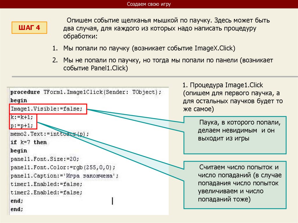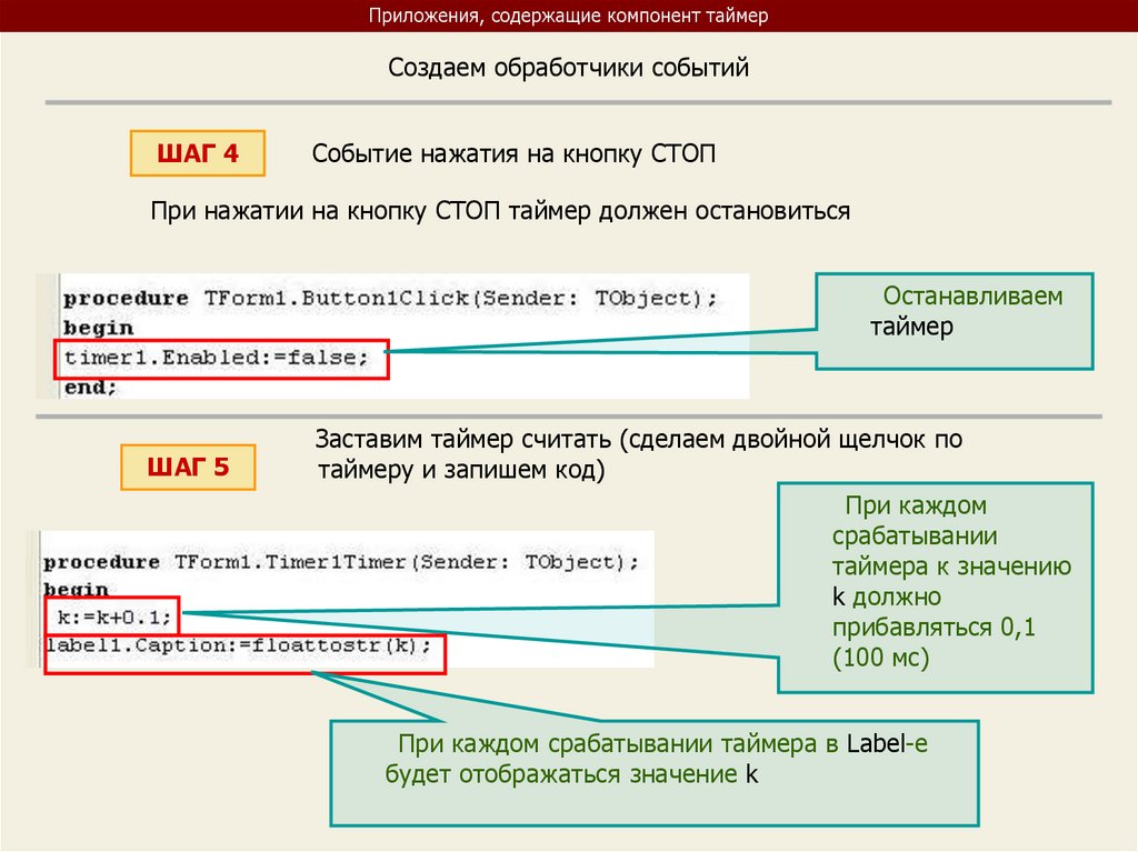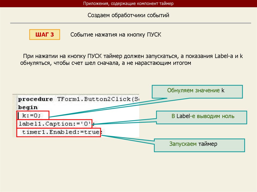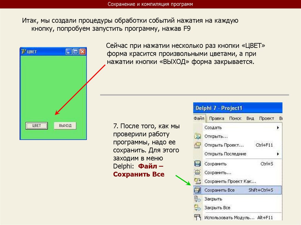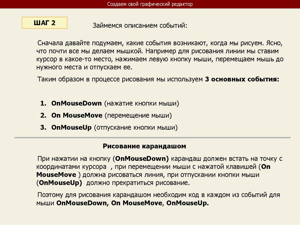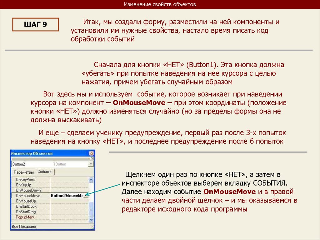 определенные события (нажатие кнопки, клавиши … ), при этом будет