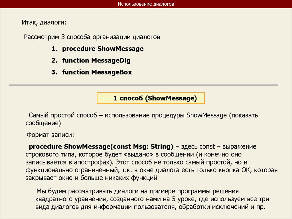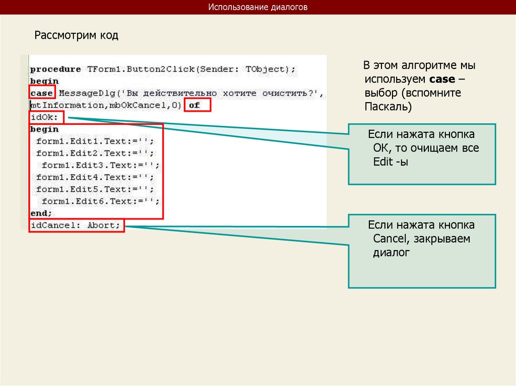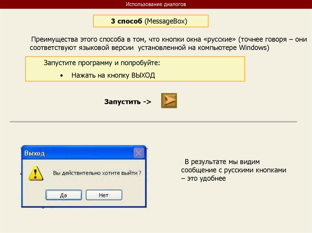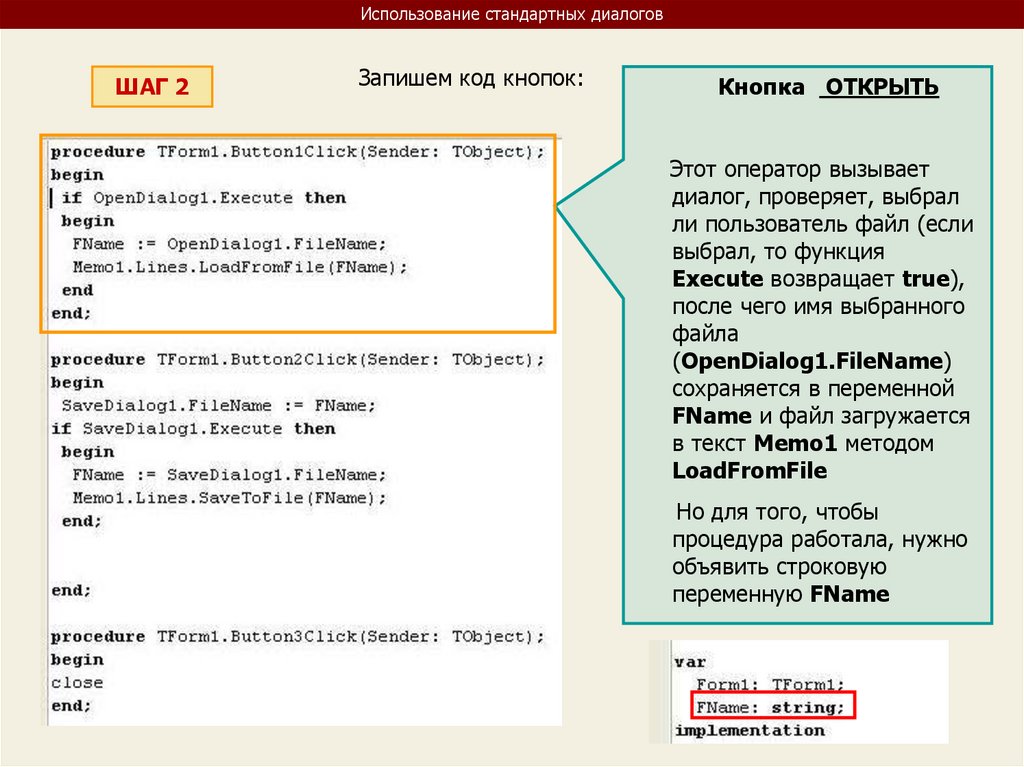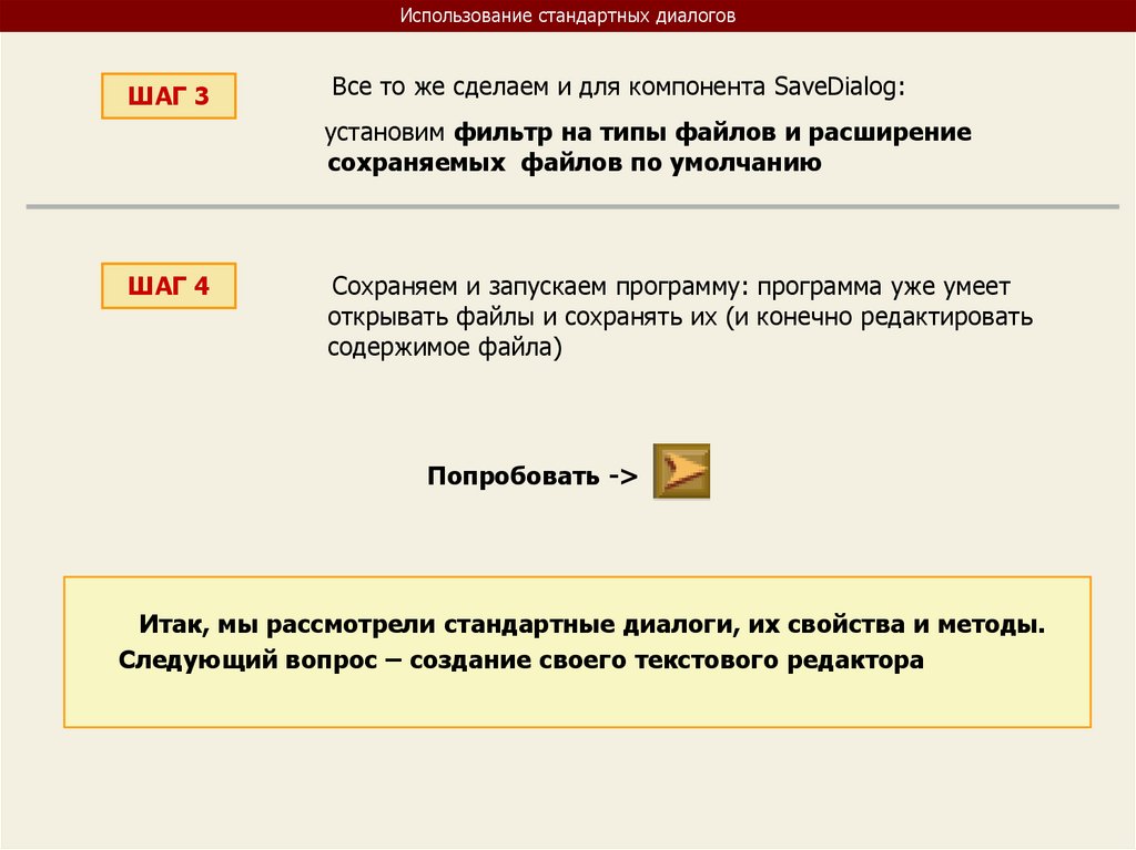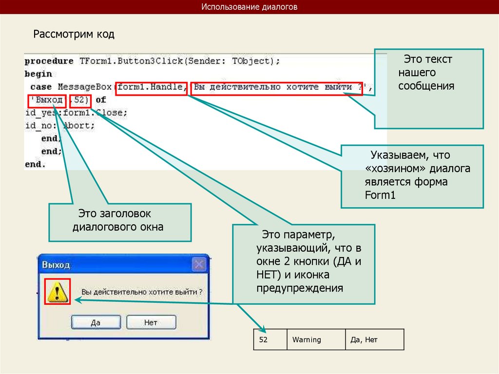 Диалоги рассмотрены нами ранее довольно подробно, поэтому комментарии излишни