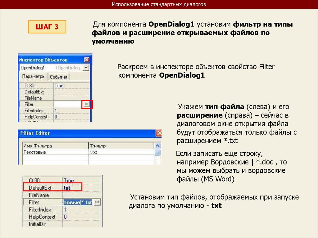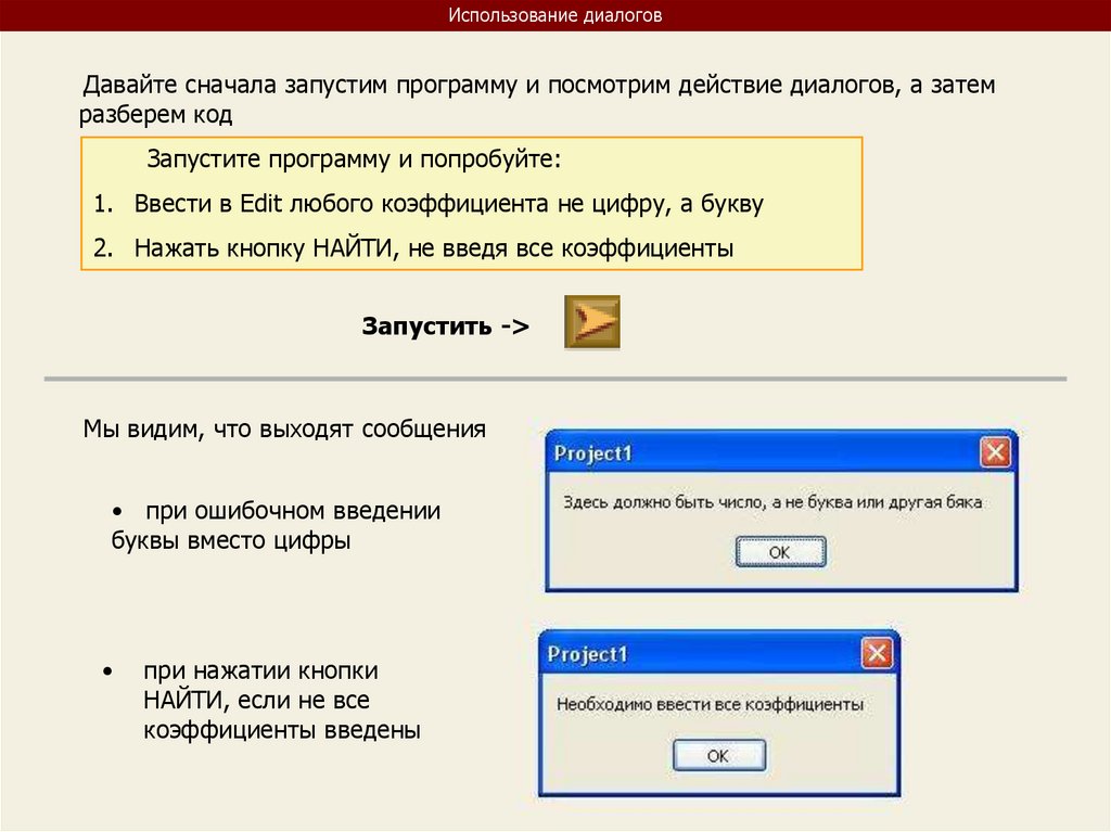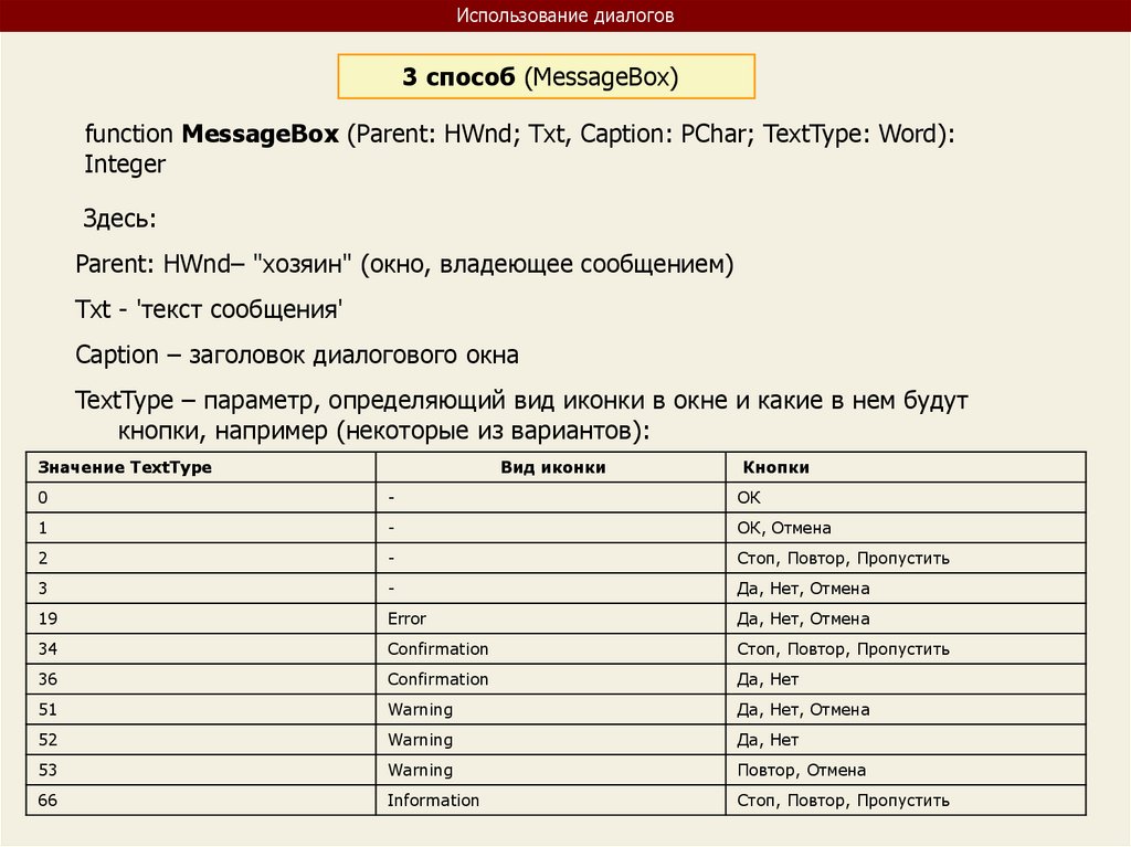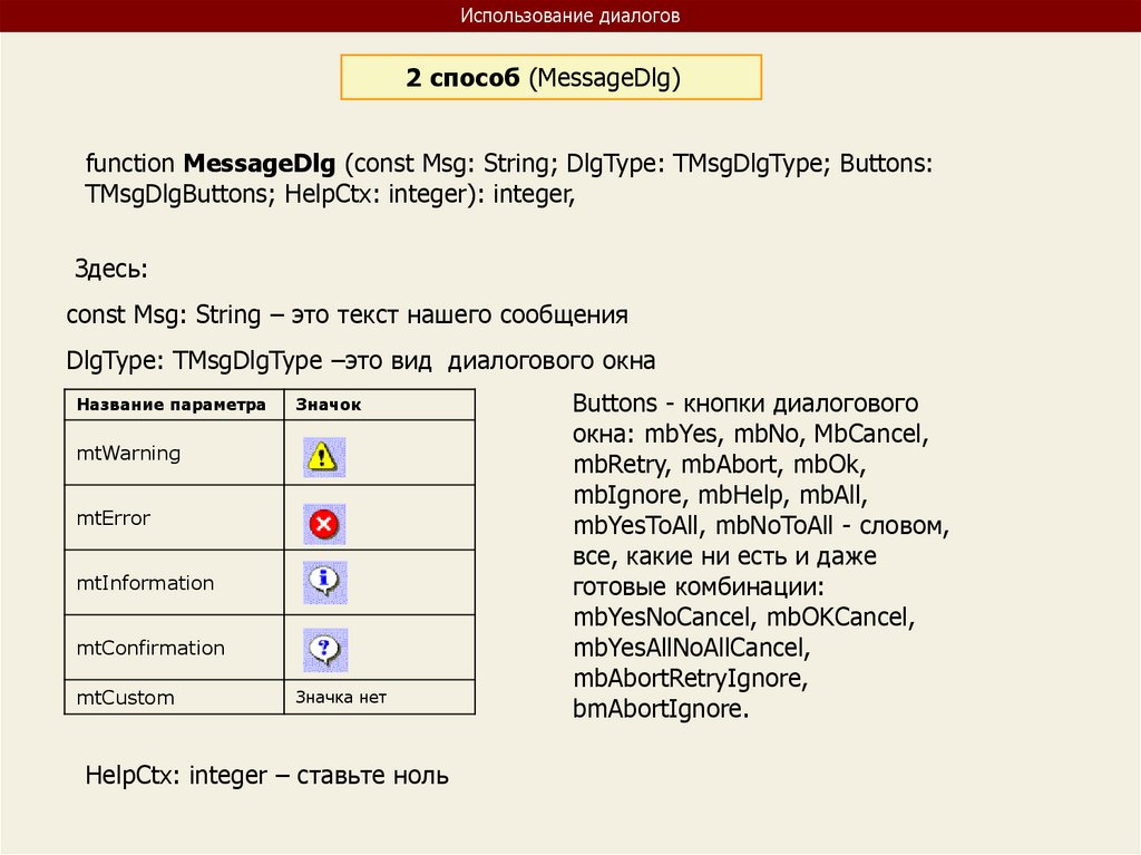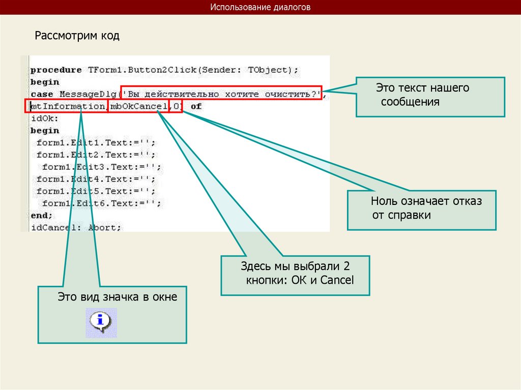Диалоги рассмотрены нами ранее довольно подробно, поэтому комментарии излишни