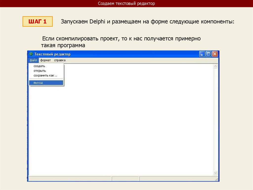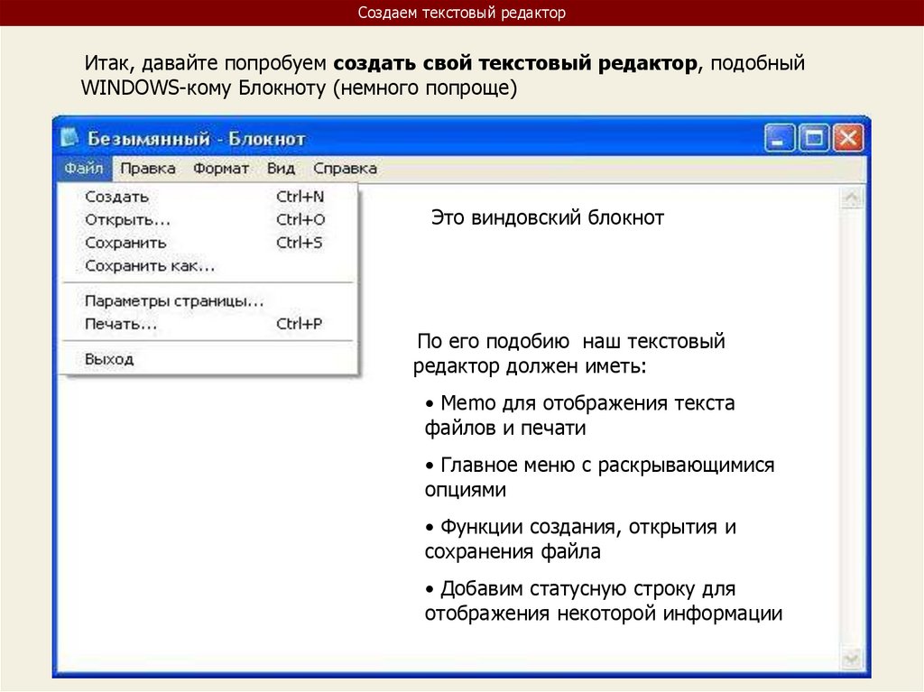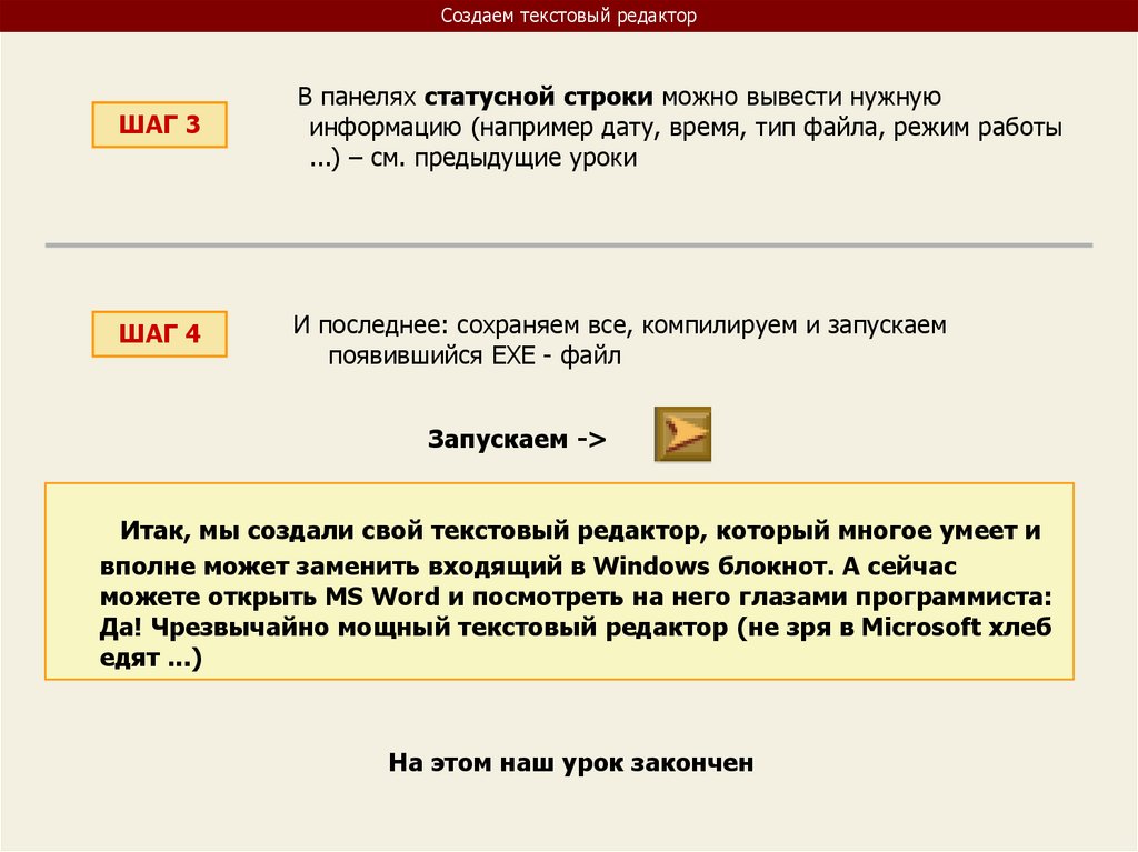 всех прошлых уроков Конечно это очень простой редактор с элементарными