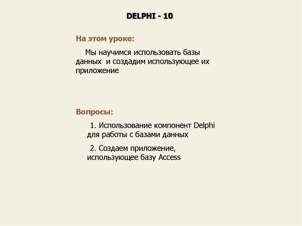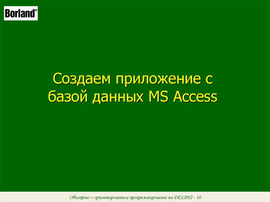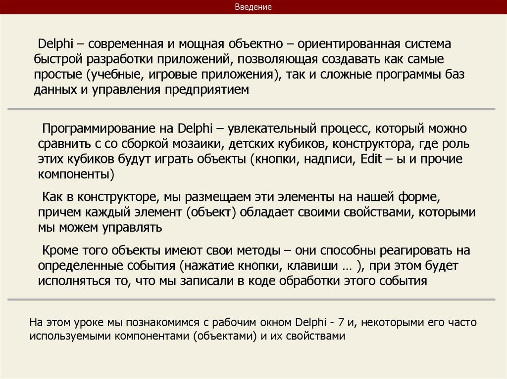 ВведениеDelphi – современная и мощная объектно – ориентированная система