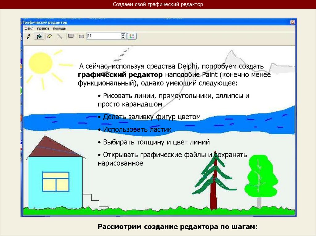 графикой в Delphi. Ну а дальше можно наращивать его возможности,