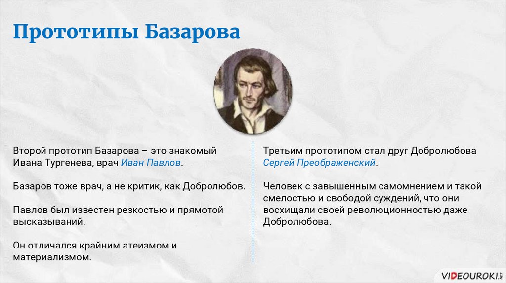 Прототипы БазароваВторой прототип Базарова – это знакомый