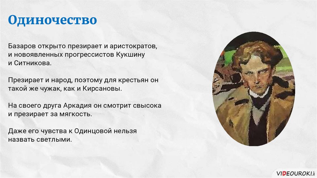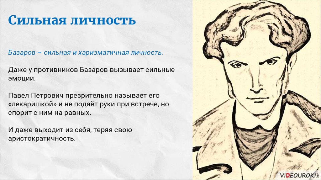 Сильная личностьБазаров – сильная и харизматичная личность.