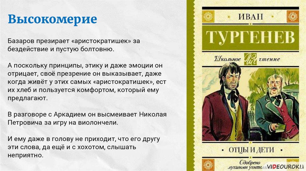 Аркадий Кирсанов и Виктор Ситников ищут вниманияБазарова и легко попадают под его влияние.