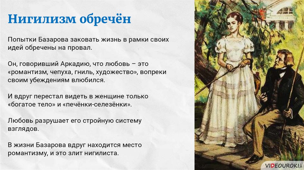 Нигилизм обречёнПопытки Базарова заковать жизнь в рамки своих