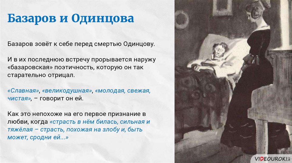 Базаров и ОдинцоваБазаров зовёт к себе перед смертью Одинцову.