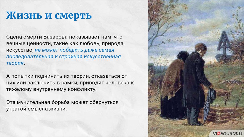 Жизнь и смертьСцена смерти Базарова показывает нам, что
