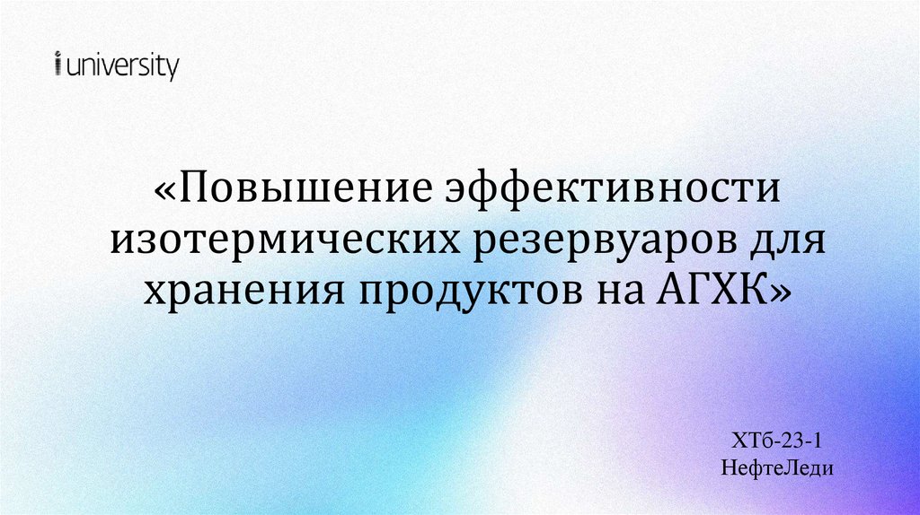 1. «Повышение эффективности изотермических резервуаров для хранения продуктов на АГХК»