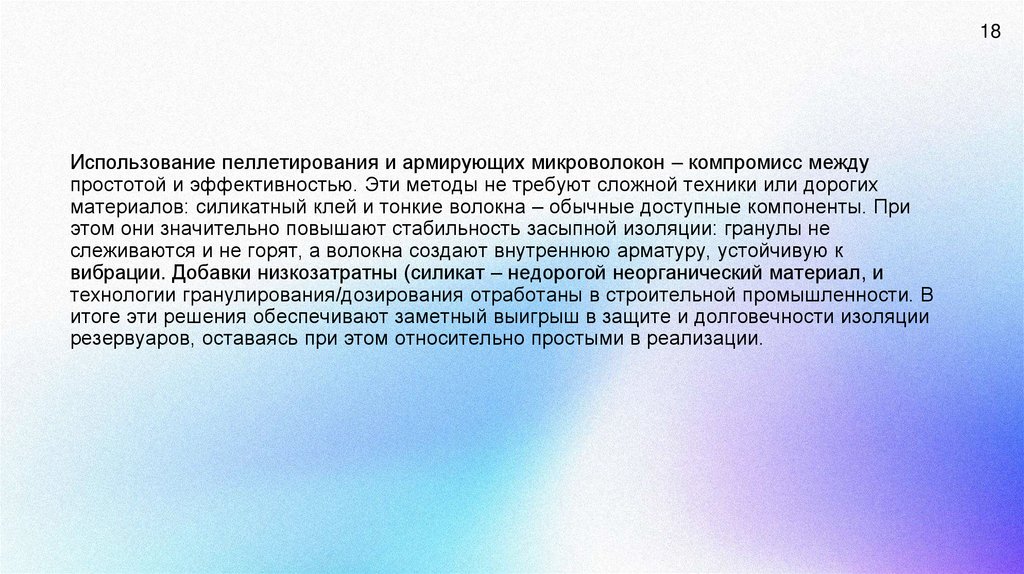 18Использование пеллетирования и армирующих микроволокон – компромисс между