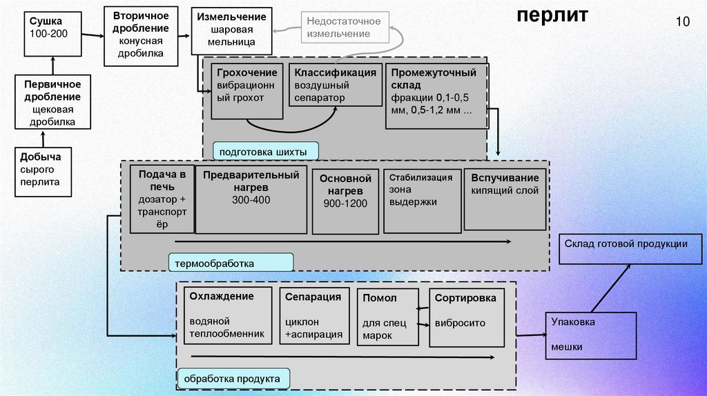 Технология: перлит смешивают с раствором связующего и небольшим количеством воды, затем гранулируют (прессуют в