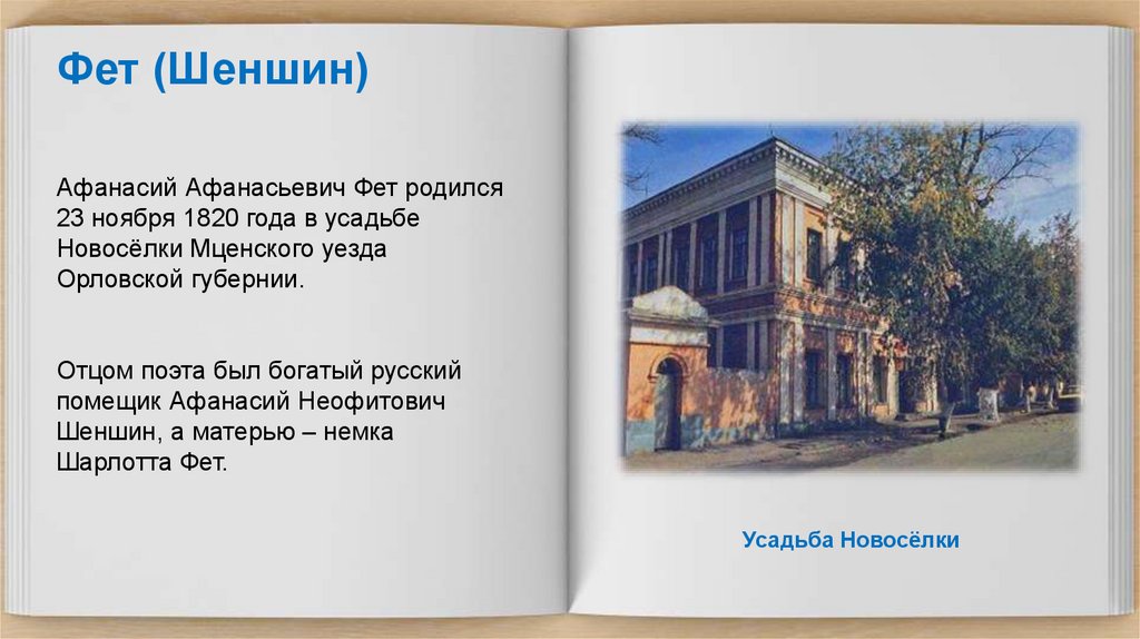 Фет (Шеншин)Афанасий Афанасьевич Фет родился