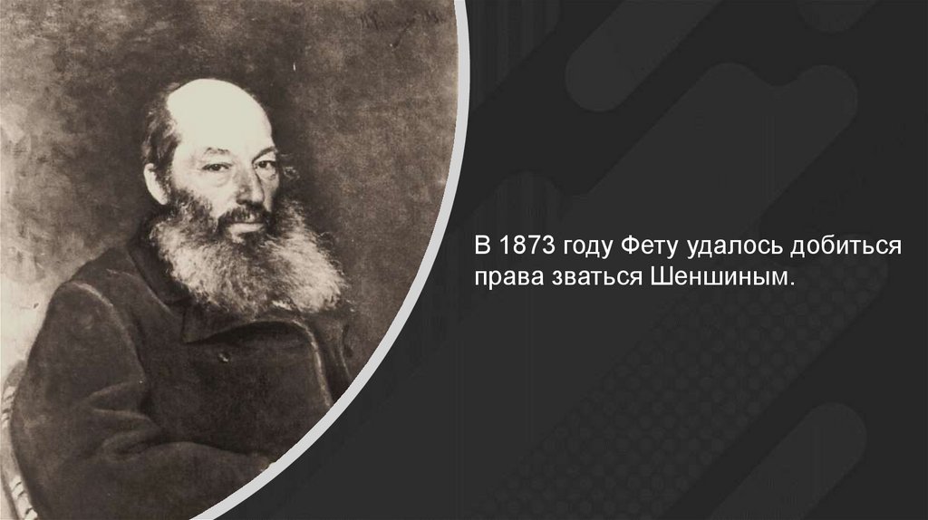 В 1873 году Фету удалось добитьсяправа зваться Шеншиным.