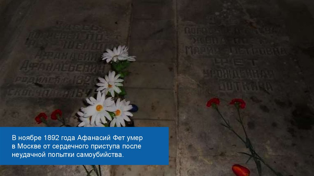 В ноябре 1892 года Афанасий Фет умерв Москве от сердечного приступа после