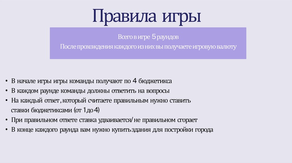 • В конце каждого раунда вам нужно купитьздания для постройки города