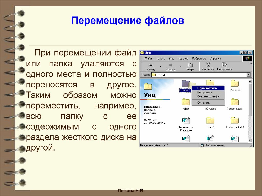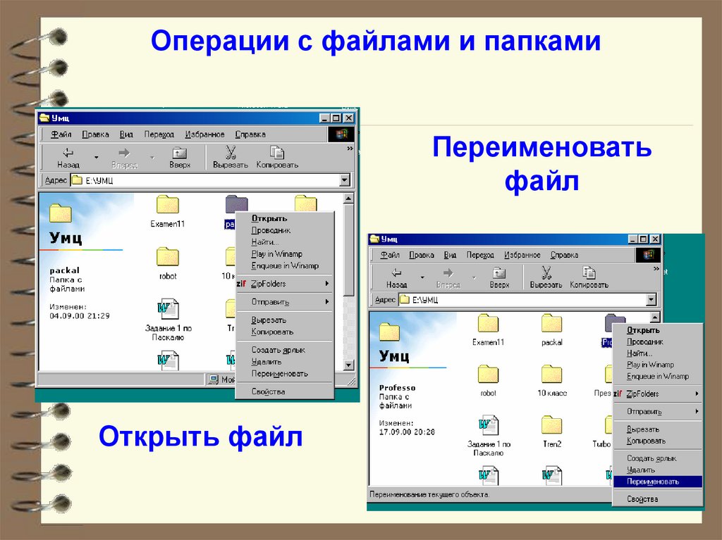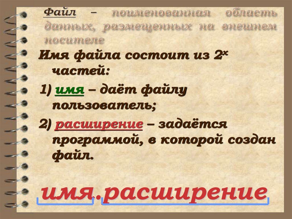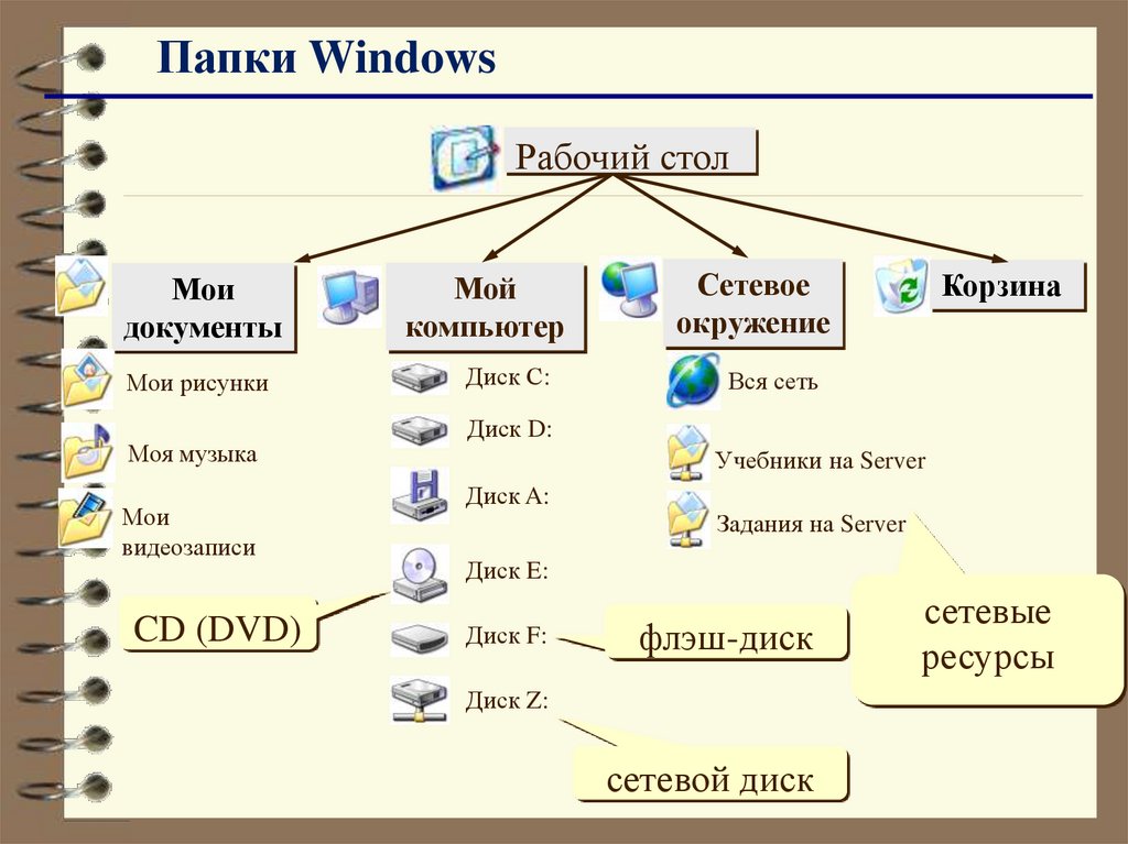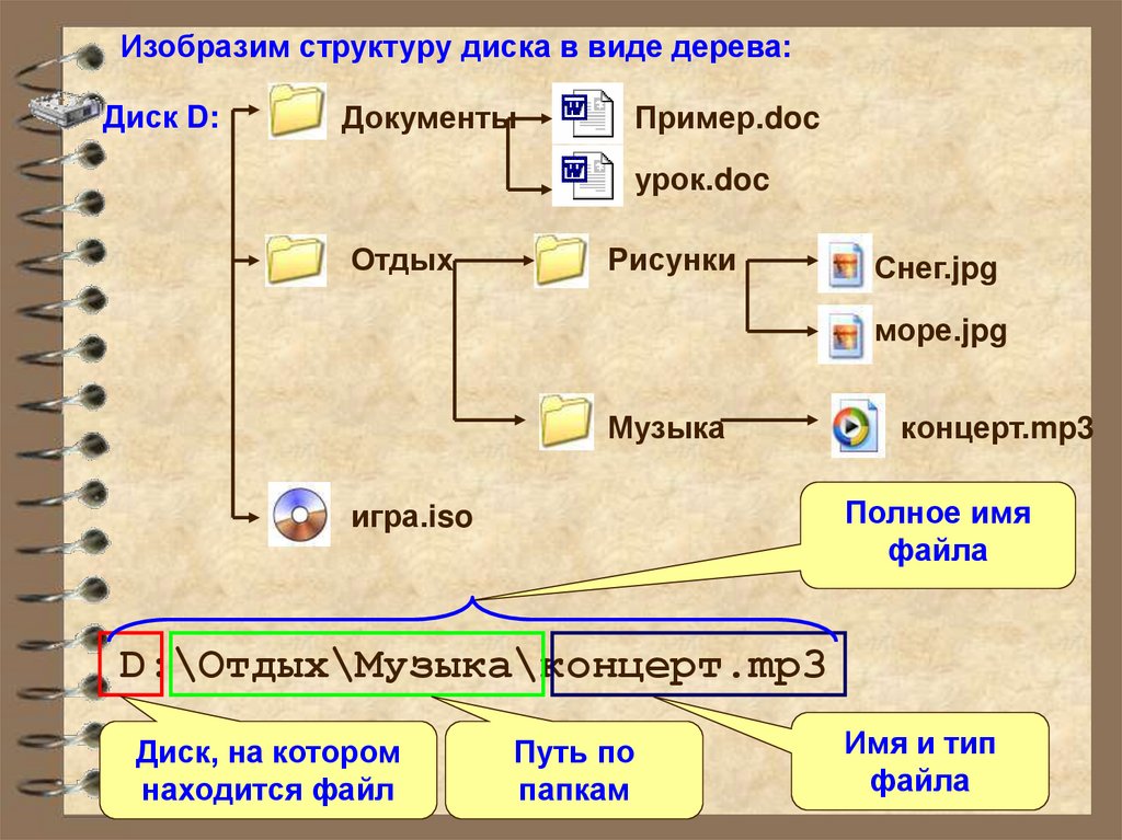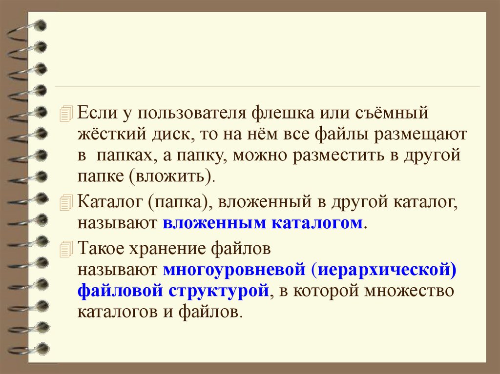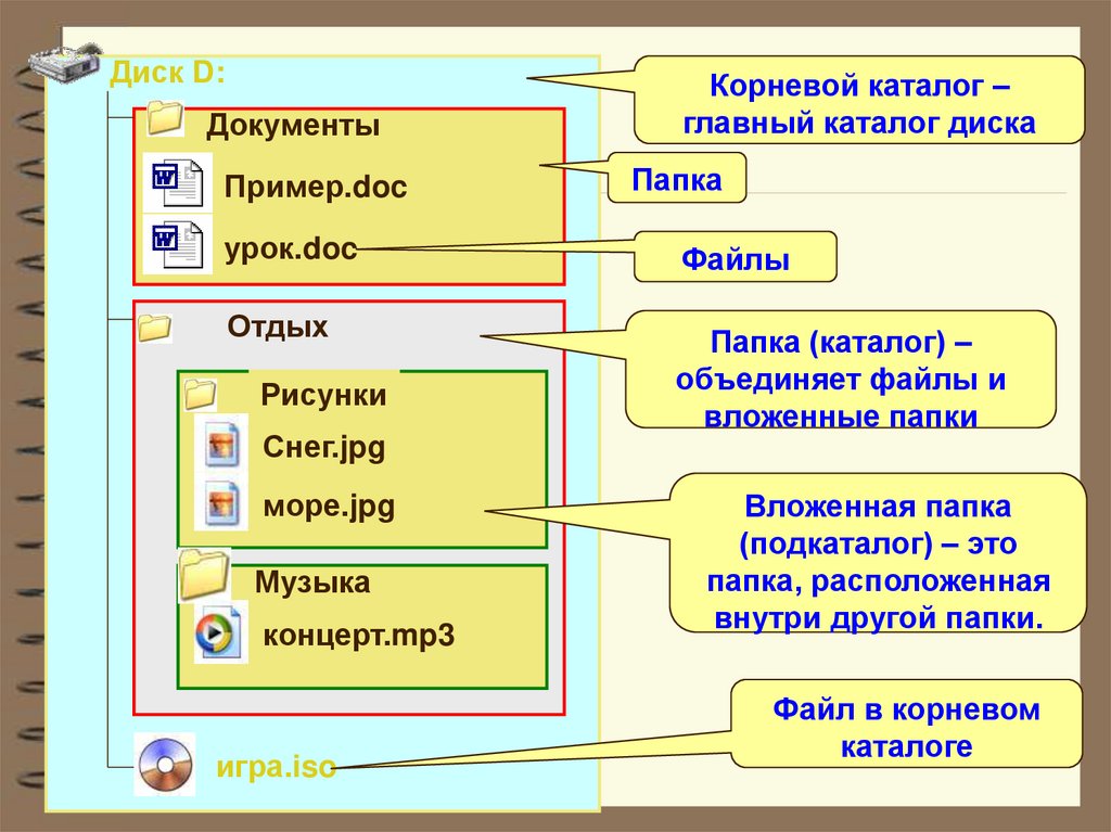 Папка (или каталог) – это место на носителе, гдехранятся файлы или другие папки с файлами.